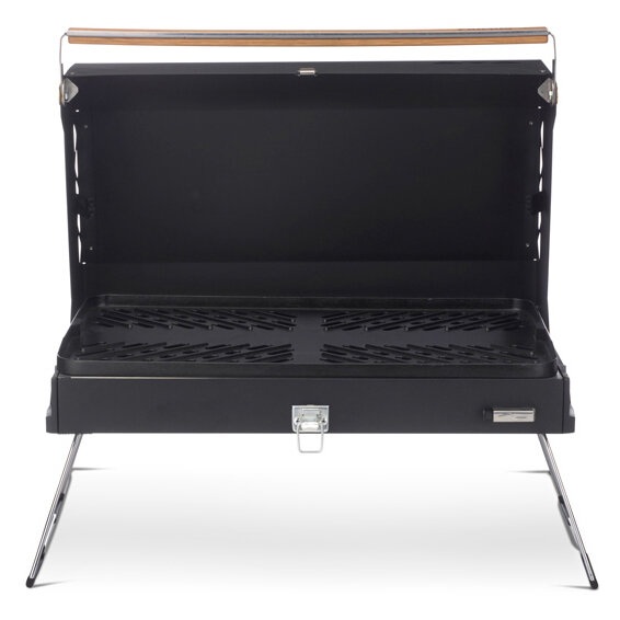 The Kuchoma barbecue is light and compact enough to carry it easily in one hand. It is the perfect portable barbecue for any outdoor cook. The intuitive locking mechanism is easy to open and secure, making preparing the meal as much fun as eating. The large steel cover provides plenty of room for skewers and slow-cooking food. Simply close the lid to preserve all the flavours and prepare the food with indirect heat. The grill grate with ceramic non-stick coating and the stainless steel drip tray are easy to clean by hand. With adapter also suitable for 3, 5 and 11 kg cylinders.