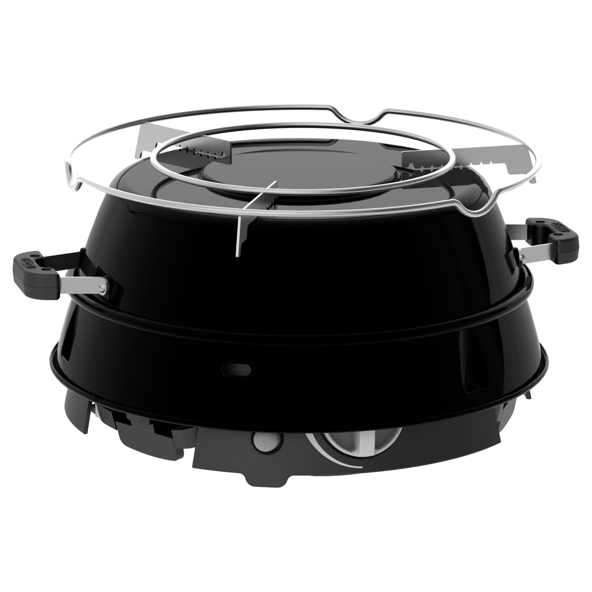 Scope of delivery: flat plate, ribbed plate, pan stand, lid/pot, carry/storage bag