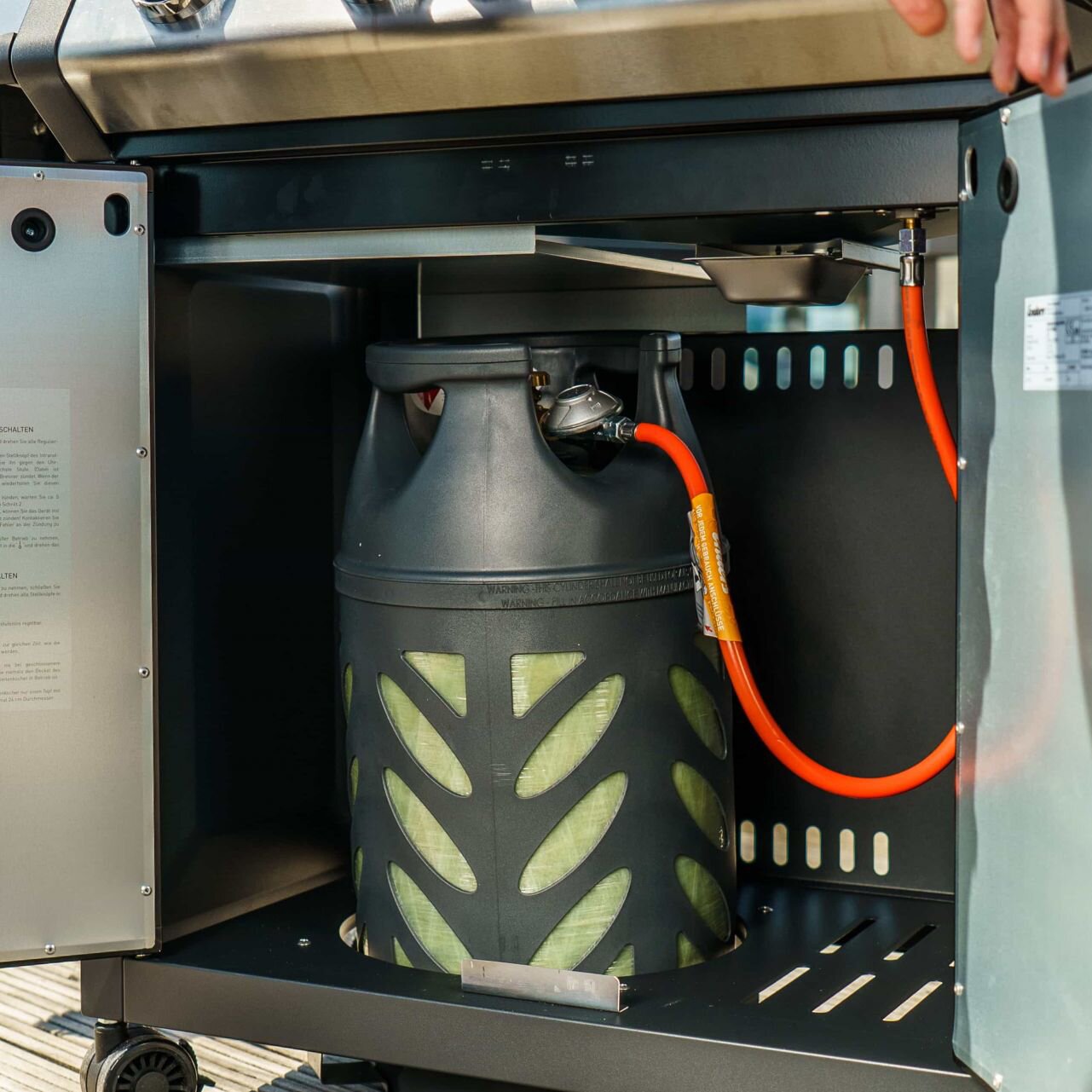 The plastic gas cylinder is sustainable and rust-proof and has a modern look as well as improved safety features. The light property cylinder is equipped with ergonomic handles. The fill level is visible and the valve is protected by a collar. Empty weight 5.3 kg. The cylinder is delivered empty. Filled, the cylinder weighs 15.3 kg.