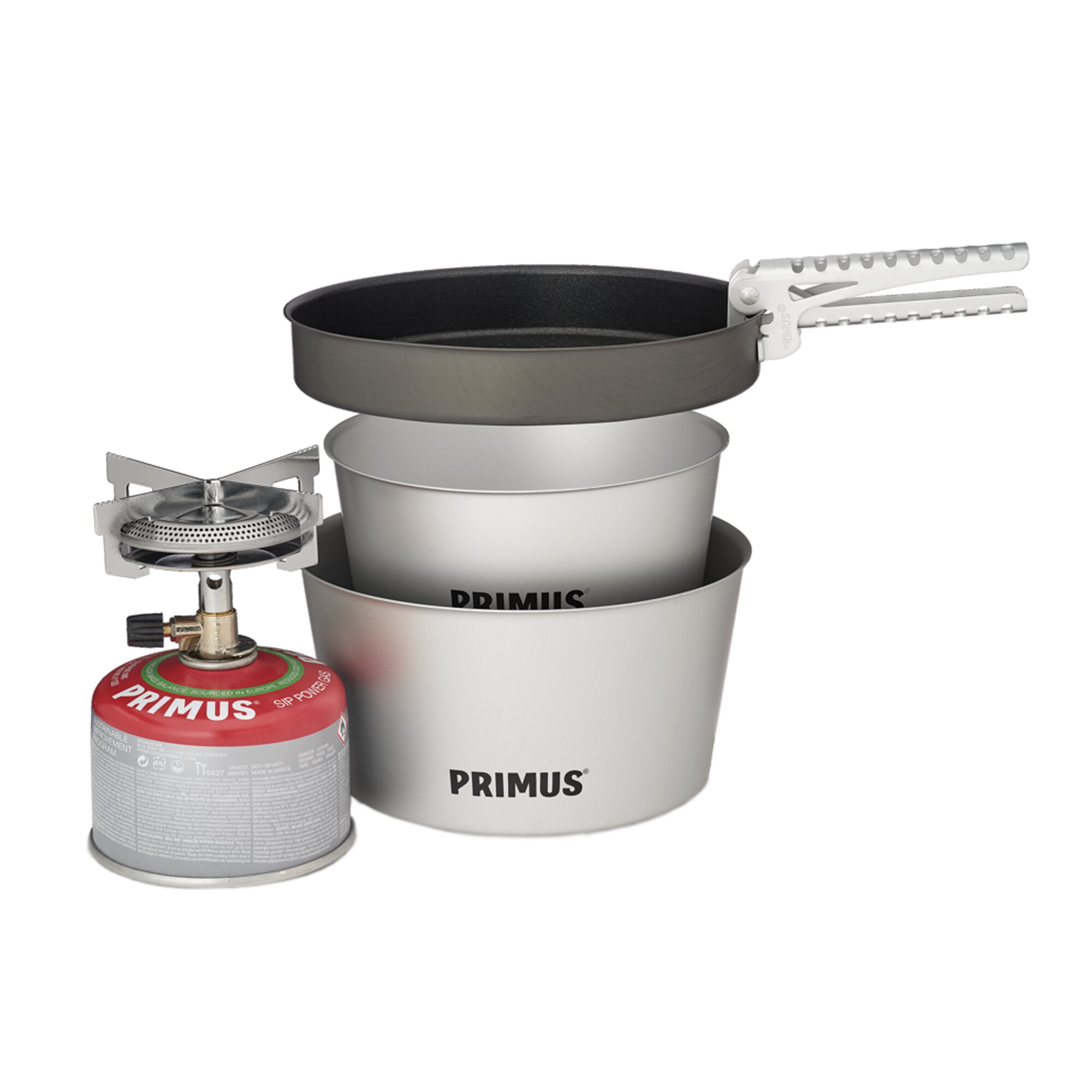 The classic cooking set consists of the robust Mimer stove, two pots and a pan. The set will accompany you on your trekking tours for a long time. The two lightweight pots made of hardened aluminium (1.3 l and 2.3 l) fit inside each other and are therefore easy to stow away. With the pot gripper, hot pots and pans are no longer a problem. Incl. nylon transport bag. Supplied without gas cartridge.