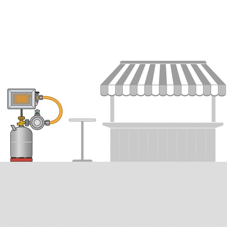 For connection to gas cylinders in the industrial sector. With excess pressure protection. Suitable for connection to 5 or 11 kg gas cylinders. 1.5 kg/h. Please note: according to system diagram F1, low pressure regulators must be equipped with a pressure gauge. Pressure regulators with an outlet pressure of 30 mbar are not suitable for use in Germany!
