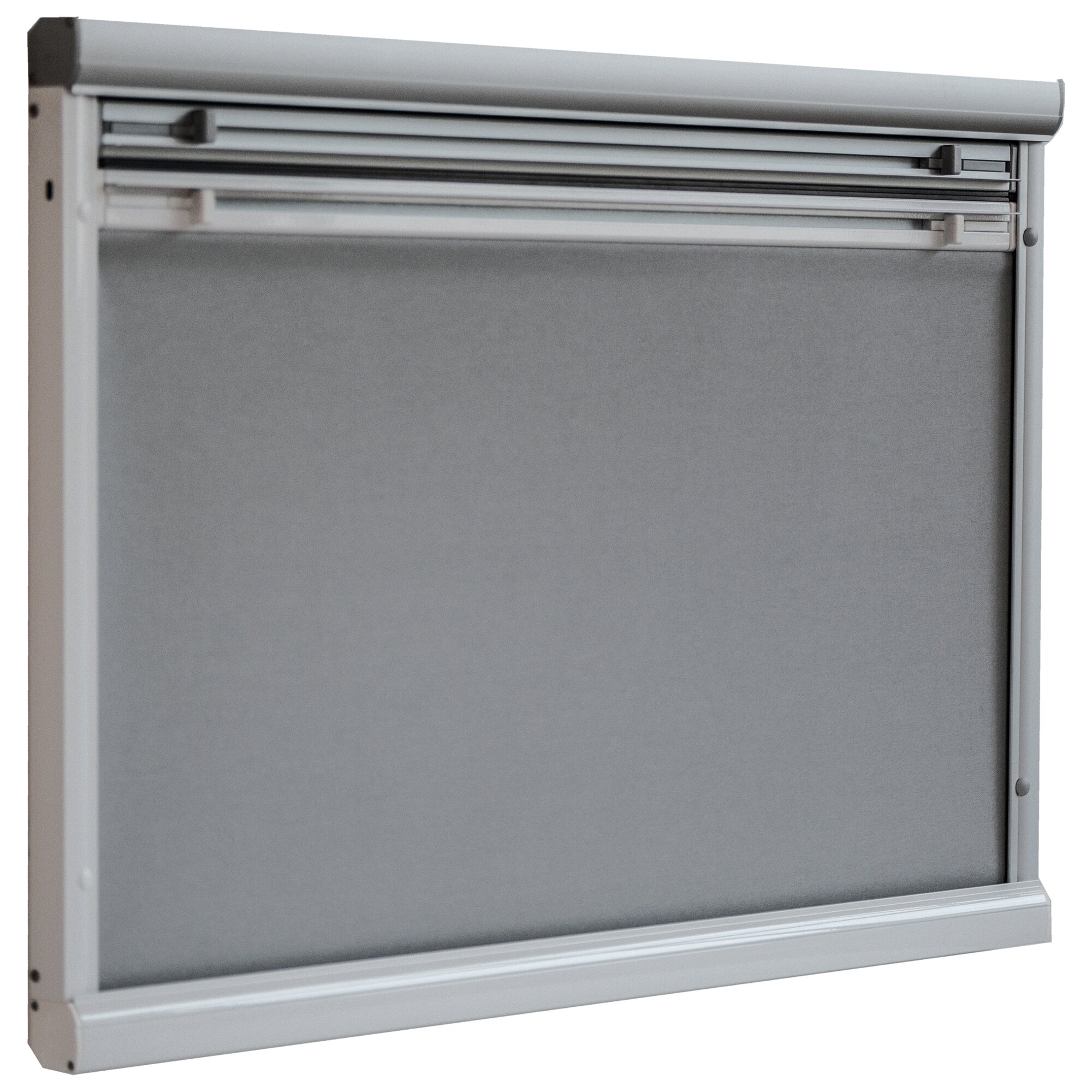 Enhance your motorhome with a custom-made cassette roller blind for the Hünerkopf security window. With its blackout function and integrated fly screen, the blind offers optimal protection against sunlight and insects. The double brush seal ensures a seamless screen. Available in silver or white aluminium profiles, it fits any interior. Suitable for all window sizes, this blind is the perfect addition for more comfort on your travels. Profile colour: white.
