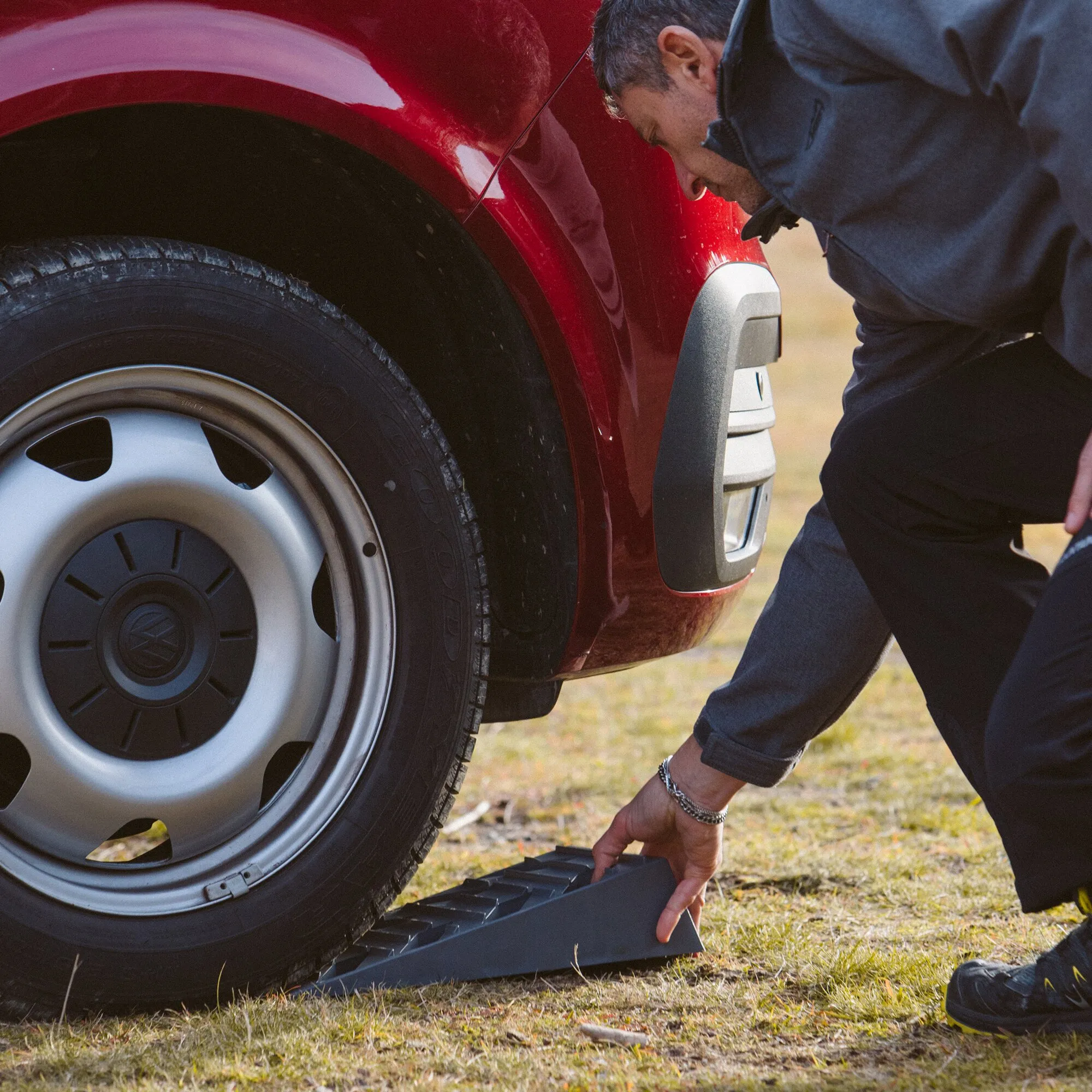 The compact levelling ramp, ideal for caravans and vans. Made of sturdy polyethylene HD, UV-resistant. Stacking system with self-locking latch. Anti-slip. Accessories (not included): Chock Level and Level Bag S.