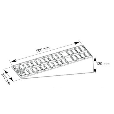 Drive smoothly onto the ramp up to an overall height of approx. 12 cm. Drive-on surface (W x D): 50 x 21.2 cm. The Maxi ramp provides perfect height compensation at inclines or on uneven terrains. Suitable for dual tyres. Scope of delivery: 2 levelling ramps, 1 bag.