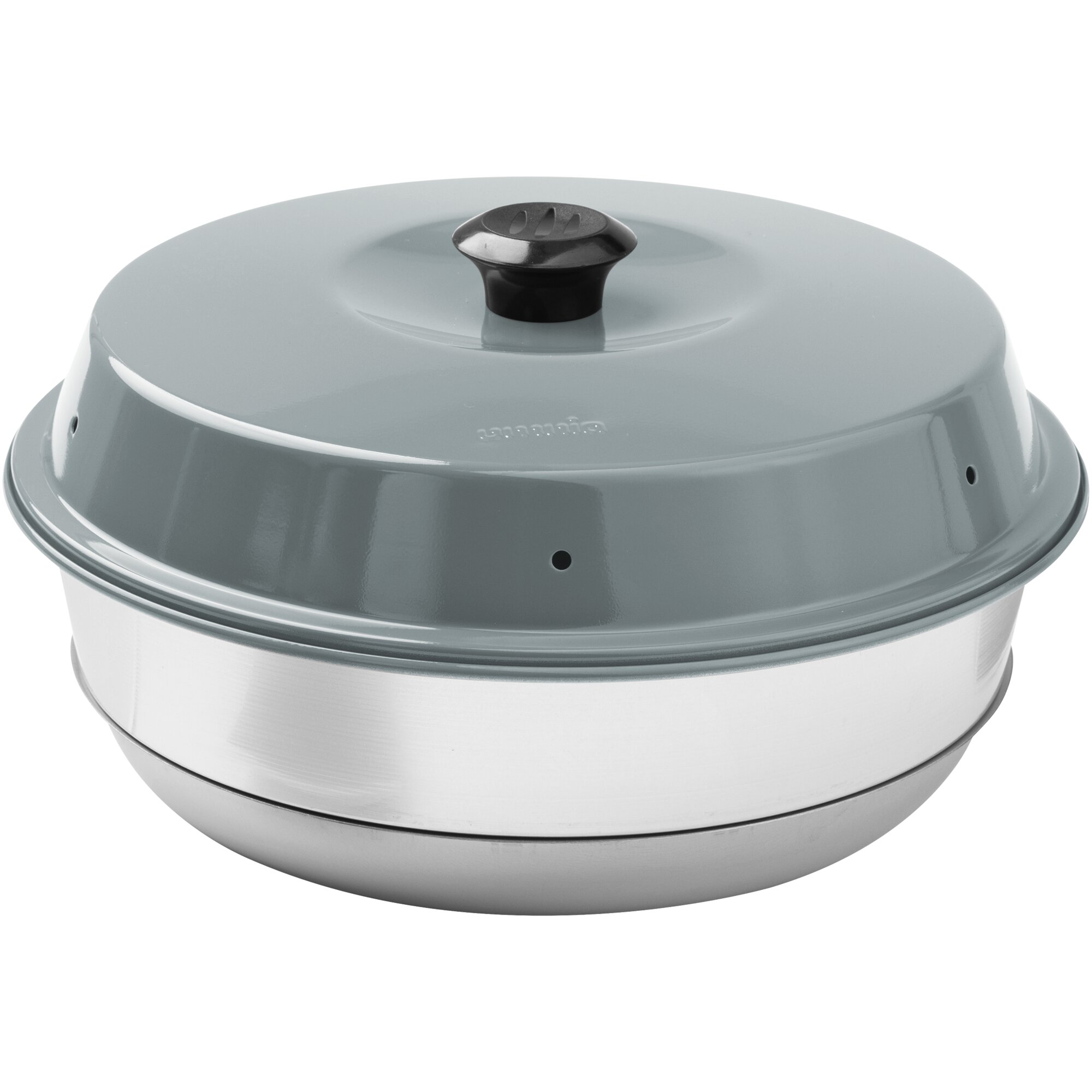 Consists of lid, aluminium baking tray and base. Material: sheet steel/aluminium. Volume: approx. 2 litres.