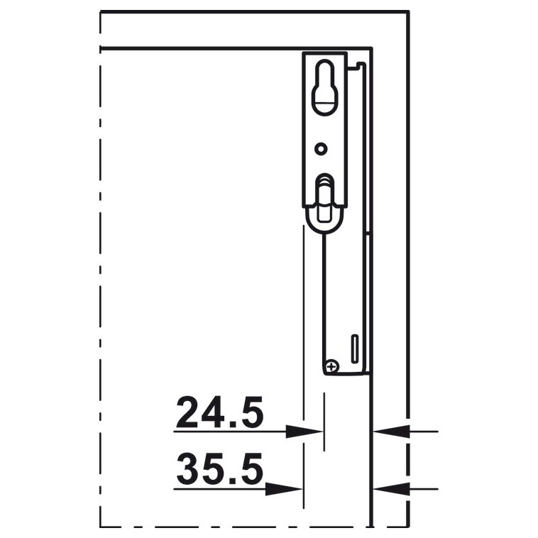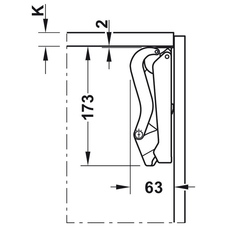 Lift-up fixing for standard applications with handle, for single hatches made of wood or with aluminium frame (19 – 21 mm or from a width of 45 mm).
