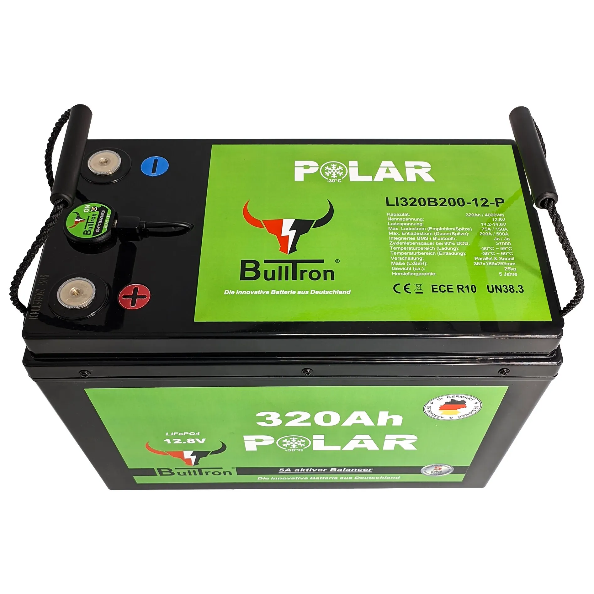 The Polar 320 Ah lithium battery is a powerful LiFePO₄ RV battery designed for underseat installation in the Fiat Ducato. It replaces conventional GEL or AGM batteries up to 640 Ah, while being significantly lighter and more compact, and can also be installed lying flat. Thanks to Smart-BMS, Bluetooth and WiFi app, CAN bus, integrated 10 A heater and twin balancer with passive and active cell equalisation, the battery operates particularly safely and efficiently. It can be used within a temperature range of -30 °C to +60 °C. High discharge currents allow the operation of inverters with up to 6000 W continuous power. With up to 7000 cycles, the battery is a long-lasting solution for reliable energy supply in motorhomes.