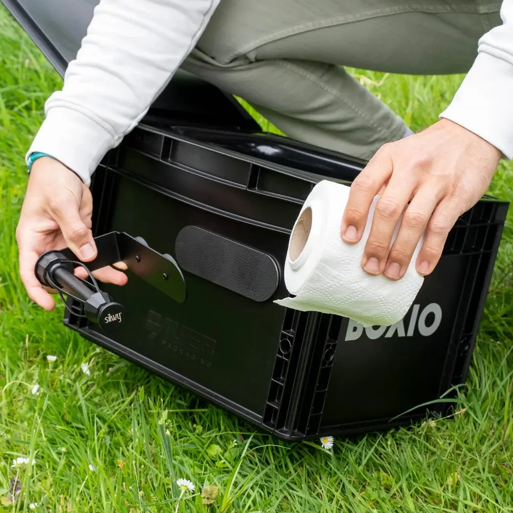 The sturdy magnetic toilet paper holder allows you to securely store your toilet paper without drilling. The strong magnet enables flexible attachment and repositioning, while the black powder coating provides an elegant look and scratch resistance. An included metal strip acts as a counterpiece for a firm hold, even during travel. The roll stop prevents unwanted unwinding. Robust, practical and space-saving.