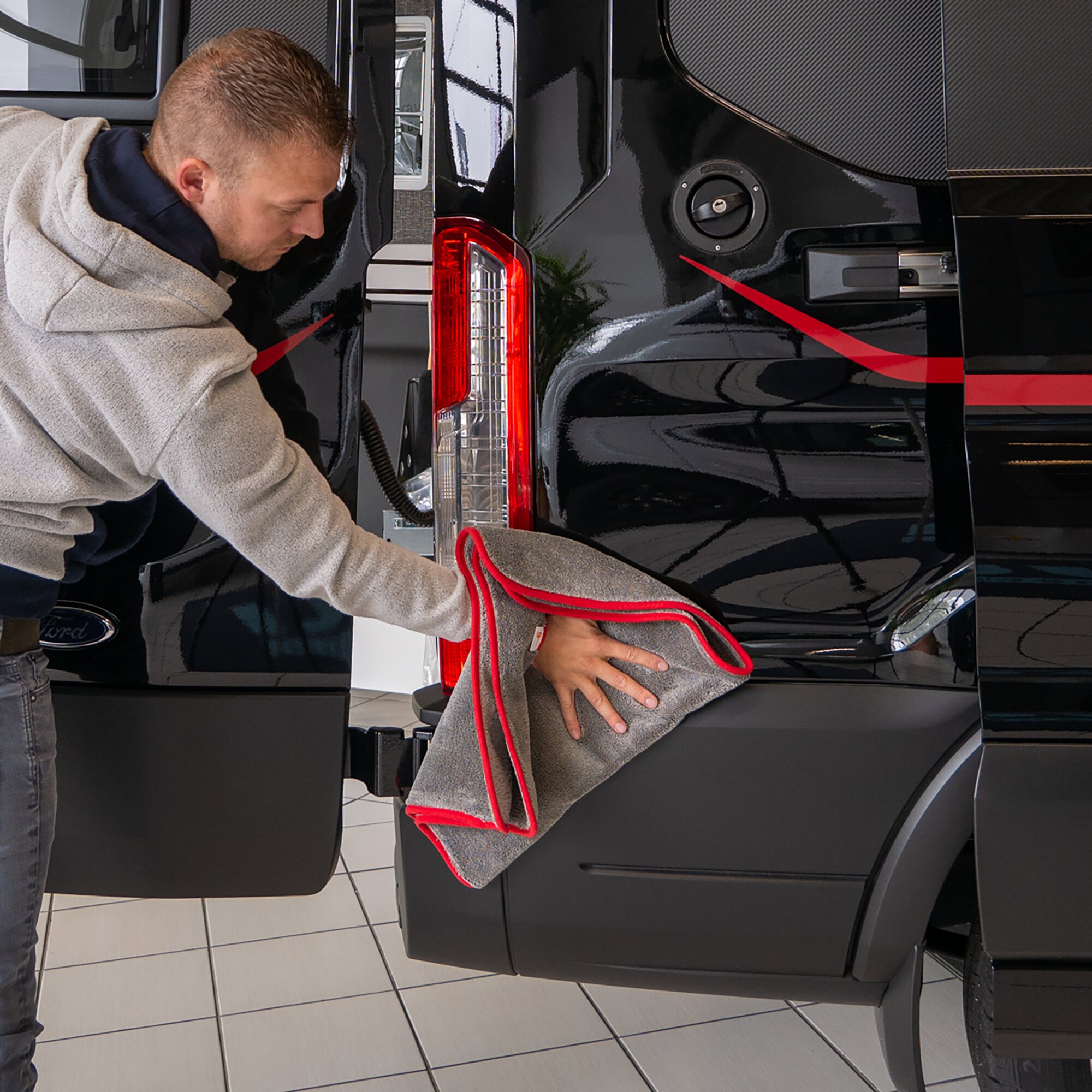 Perfect for drying large surfaces. For paintwork, foiling, metal and plastic parts. Enormous absorbency. Suitable for every hand size. Suitable for washing machine and tumble dryer.