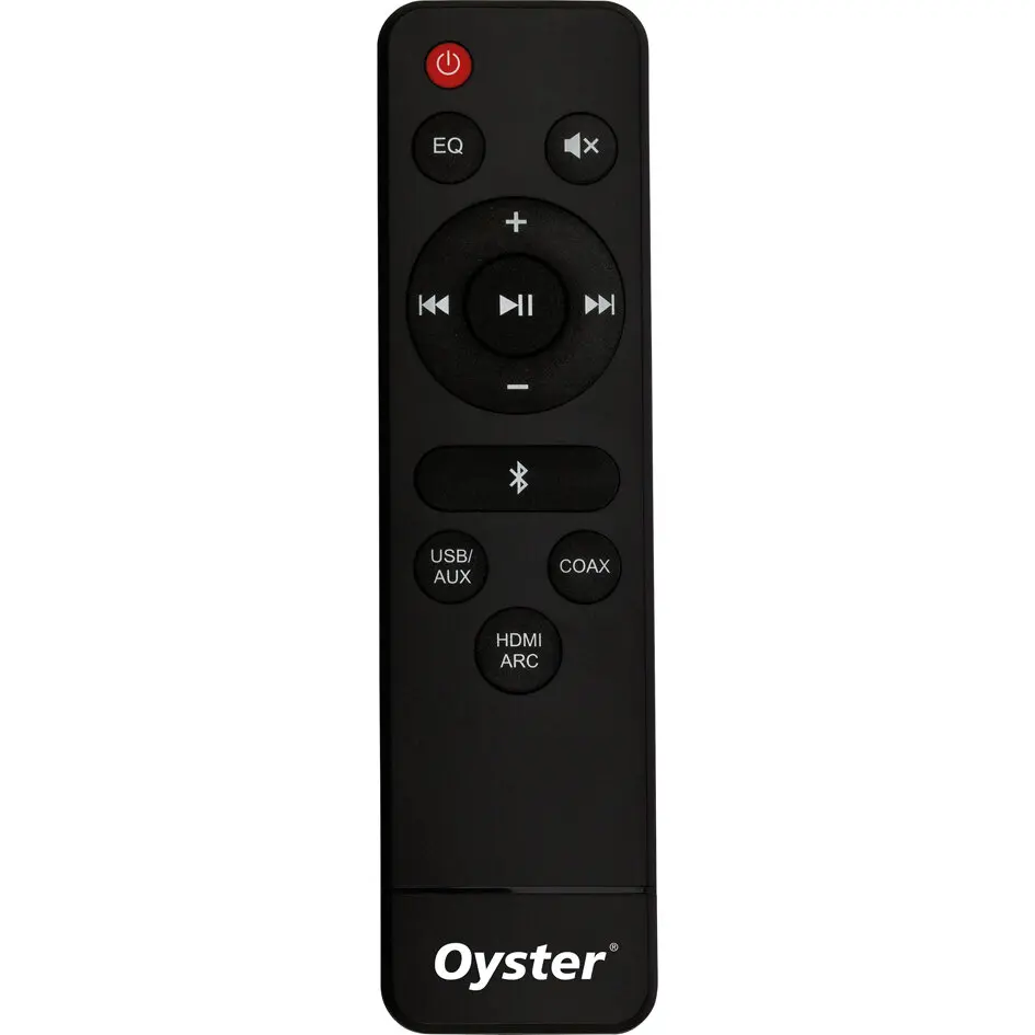 Soundbar, remote control, mounting bracket for direct installation onto “Oyster® TV”, AUX cable, COAXIAL cable, HDMI ARC cable, net adapter 110 V – 240 V AC with EURO Schuko plug, power connection cable 12 V / 24 V.