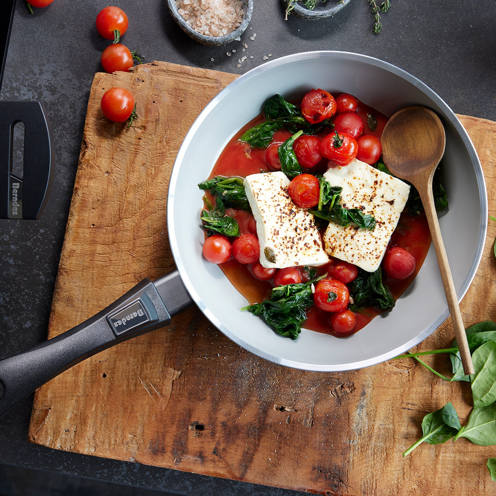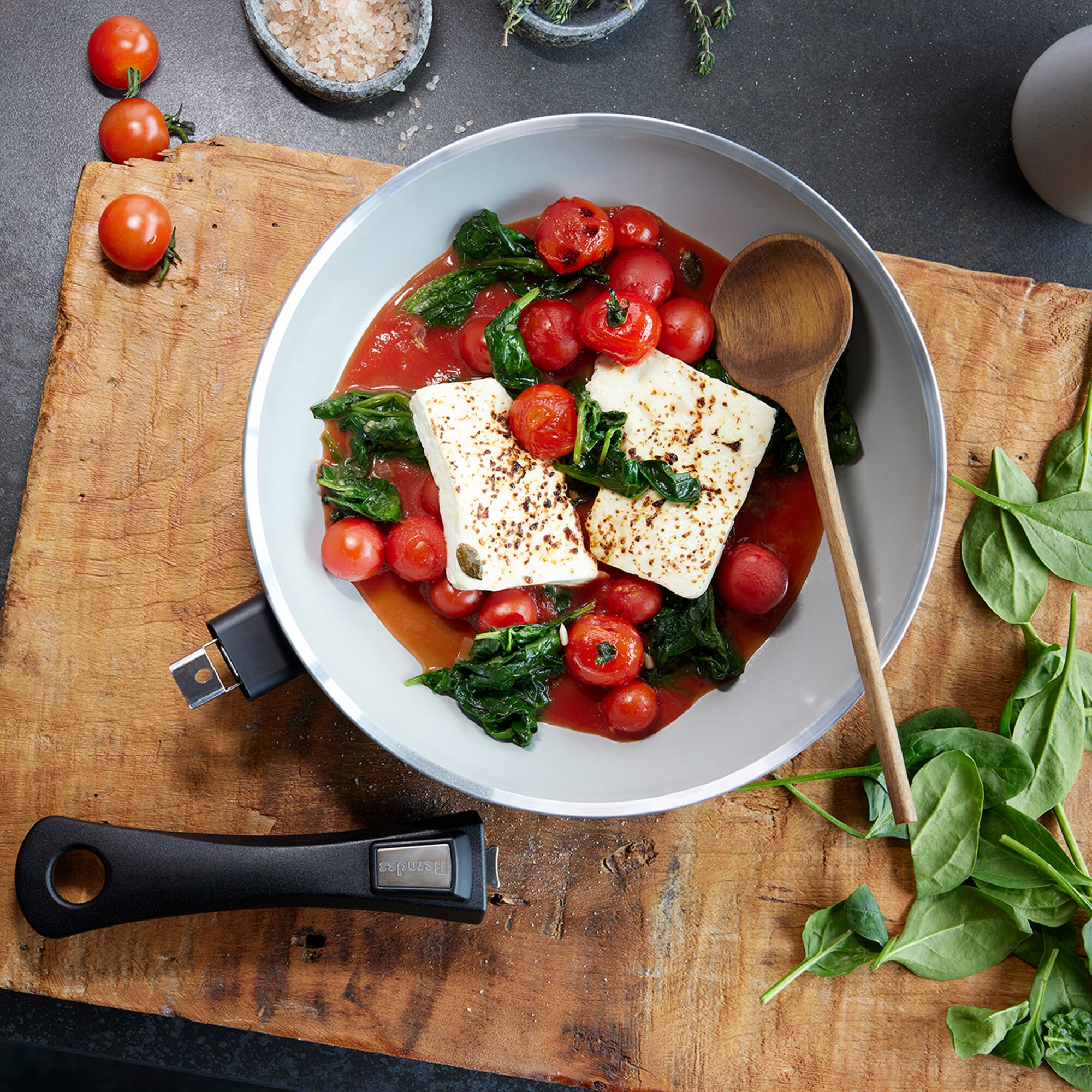 The detachable handle (available separately, item no. 310/539) enables space-saving storage and allows you to use the pan in the oven. The full-surface induction base ensures optimum heat distribution on all types of hobs, and is also perfect for multi-zone induction hobs. Another highlight is the PFAS-free b.nature quartz coating, which is characterised by an outstanding non-stick effect.