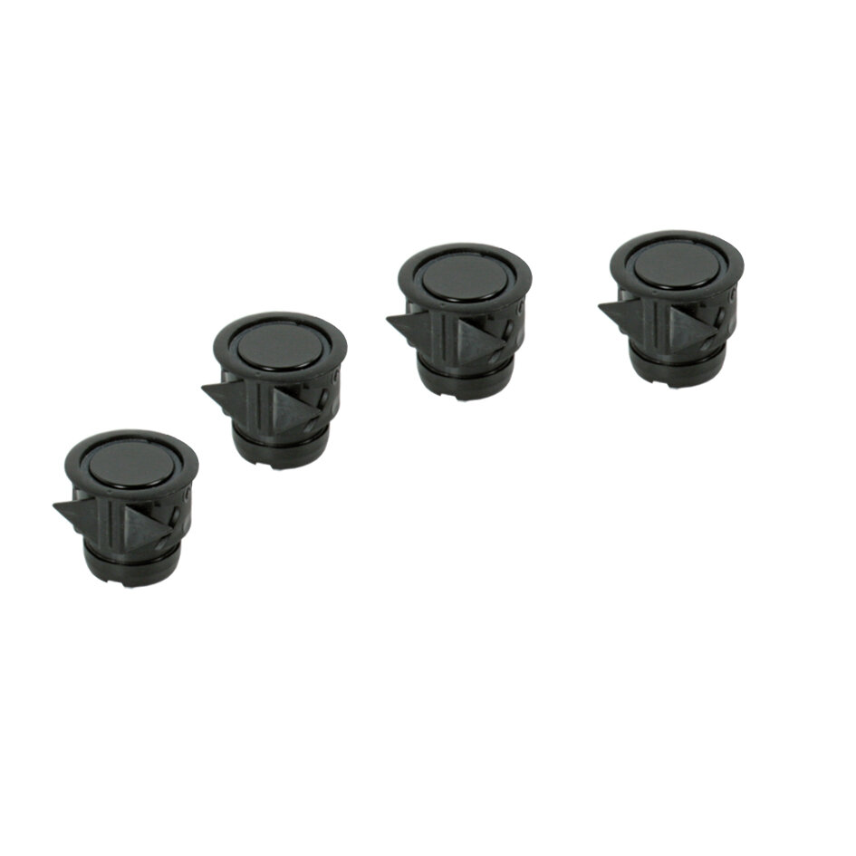 Parking aid available as front (F294) and rear version (R294). The 4 extra flat mini ultrasonic sensors detect every obstacle in front or back of the vehicle. The small sensors with a diameter of only 22 mm are very easy to install by clip-mounting. Thanks to its very slim retaining ring (only 0.75 mm thick) the sensors, varnished in the colour of the vehicle, blend perfectly into the bumper. Training the parking aid is not necessary. Adjustment of the settings (sensivity and volume) is possible.