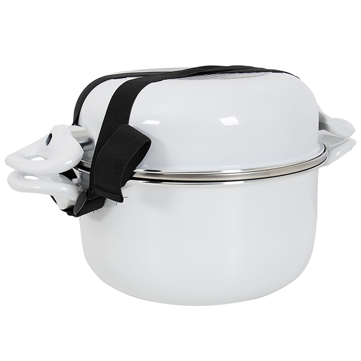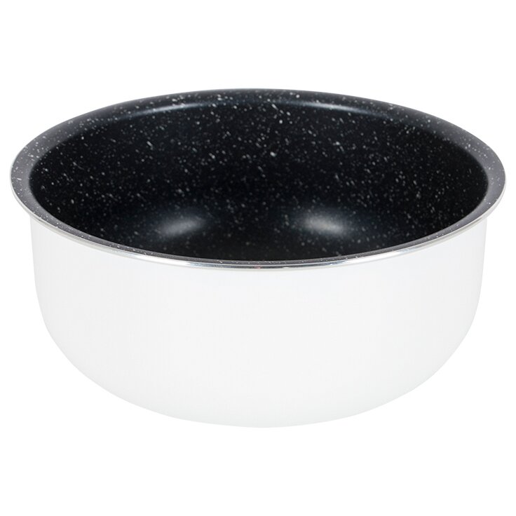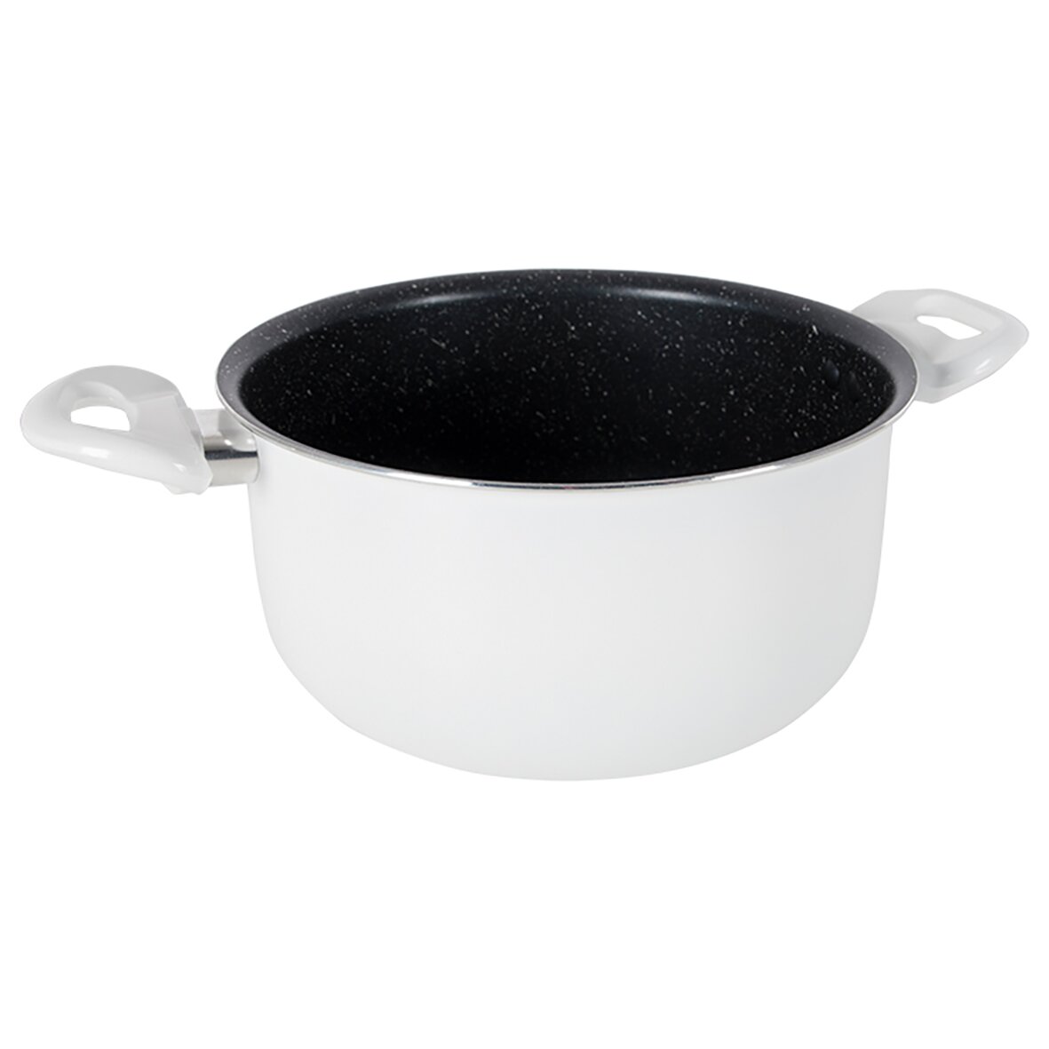 The high-quality aluminium pot set with non-stick coating is suitable for induction. The detachable handle is equipped with a safety locking mechanism that prevents it from accidentally becoming detached.