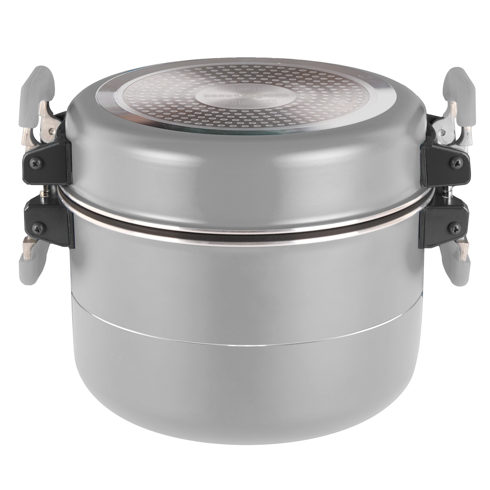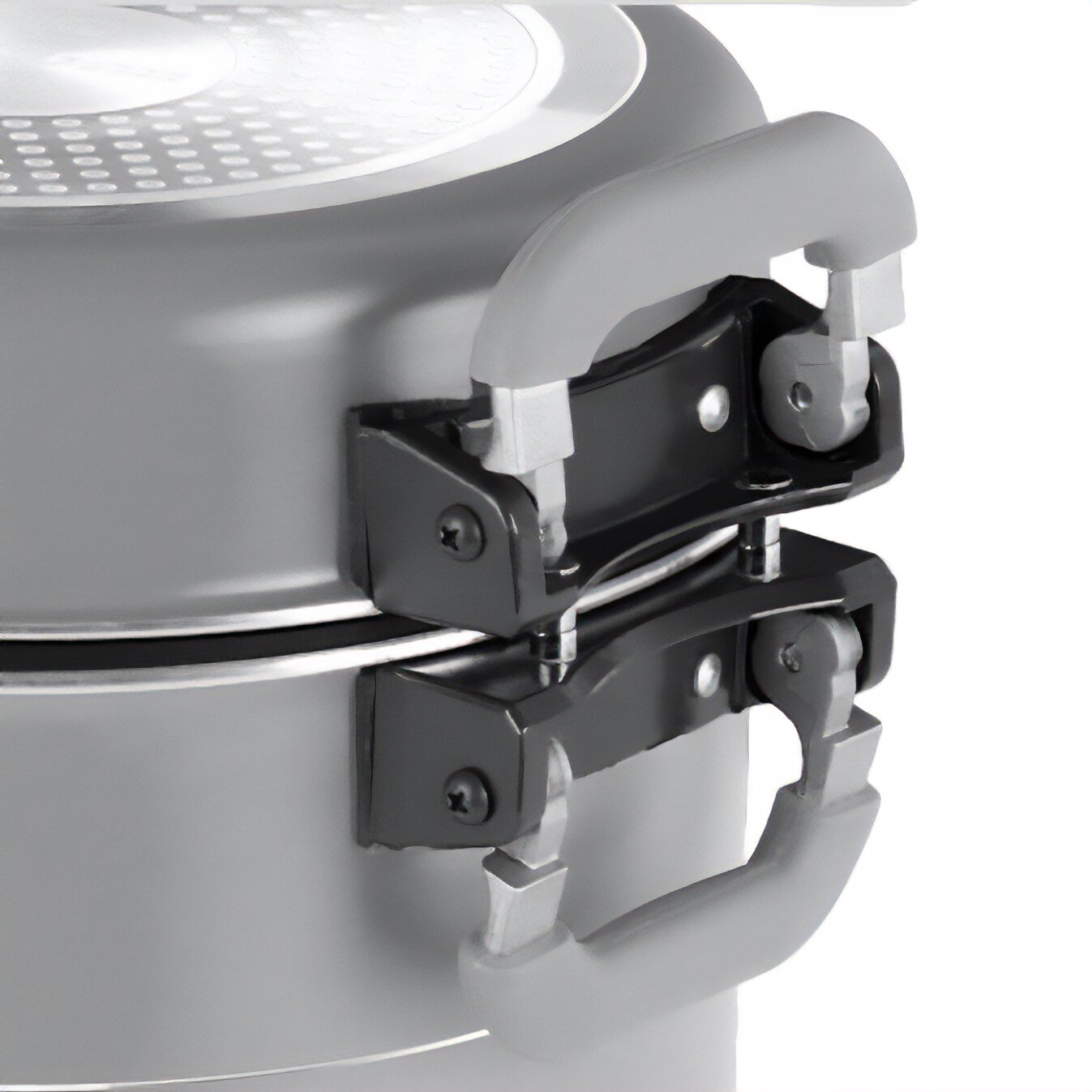 High-quality pot set with scratch-resistant ceramic non-stick coating. Equipped with induction-compatible bases and the revolutionary Vacublock and Magnetogrip systems. All pots and pans can be stacked inside each other to save space.