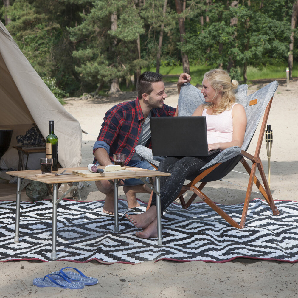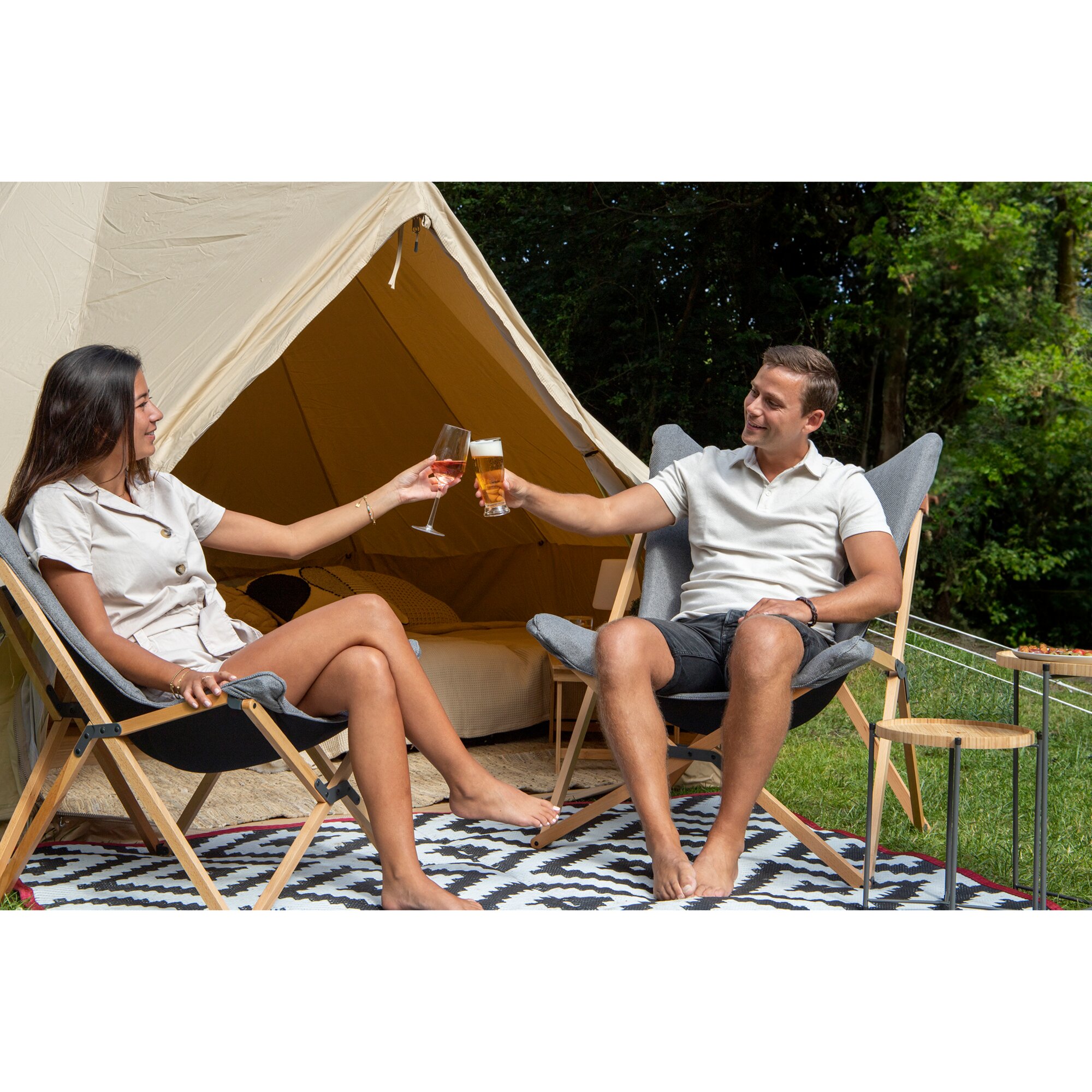 An extremely luxurious and comfortable reclining chair with a stylish and stable beech frame. The faux linen seat is padded. The combination of an especially wide and deep seat, the padded fabric and the pillow makes this chair extremely comfortable. The chair can be folded, guaranteeing a small pack size. Incl. bag.