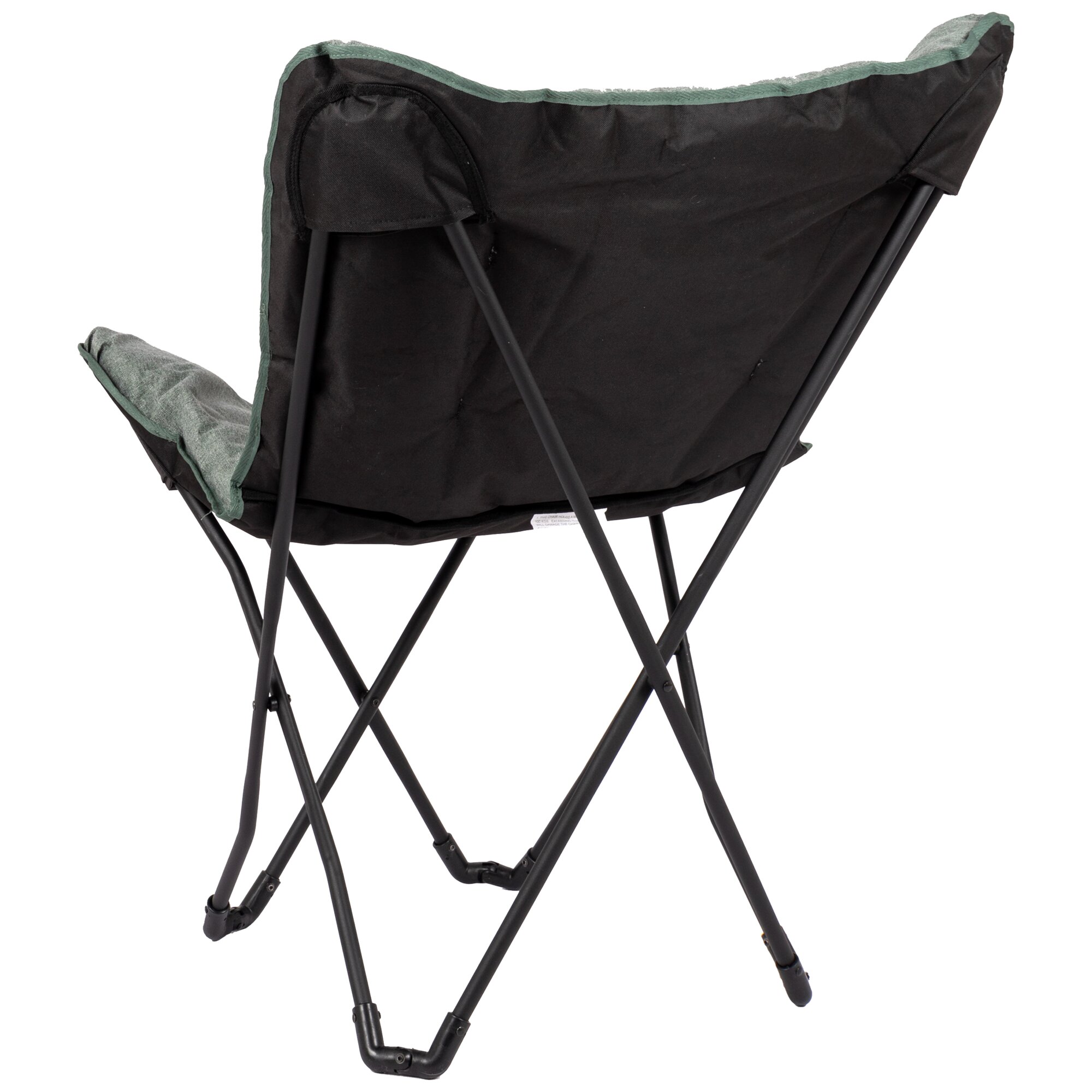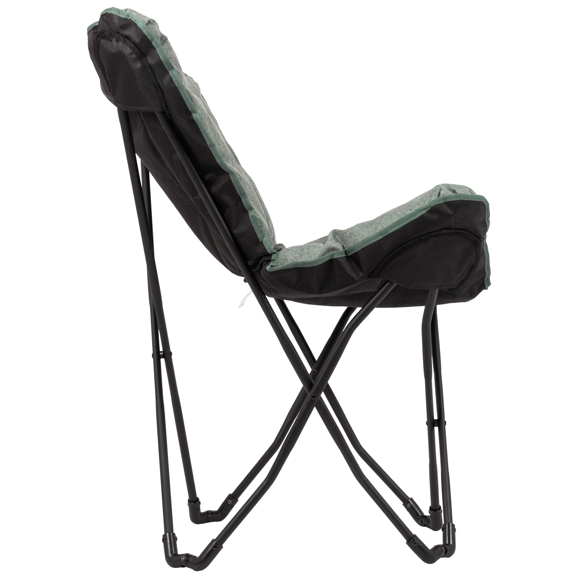 Reclining chair with padded cationic surface featuring a stitched pattern and a wide, deep seat. The sturdy black steel frame is foldable and the chair is easy to transport thanks to the included carry bag.