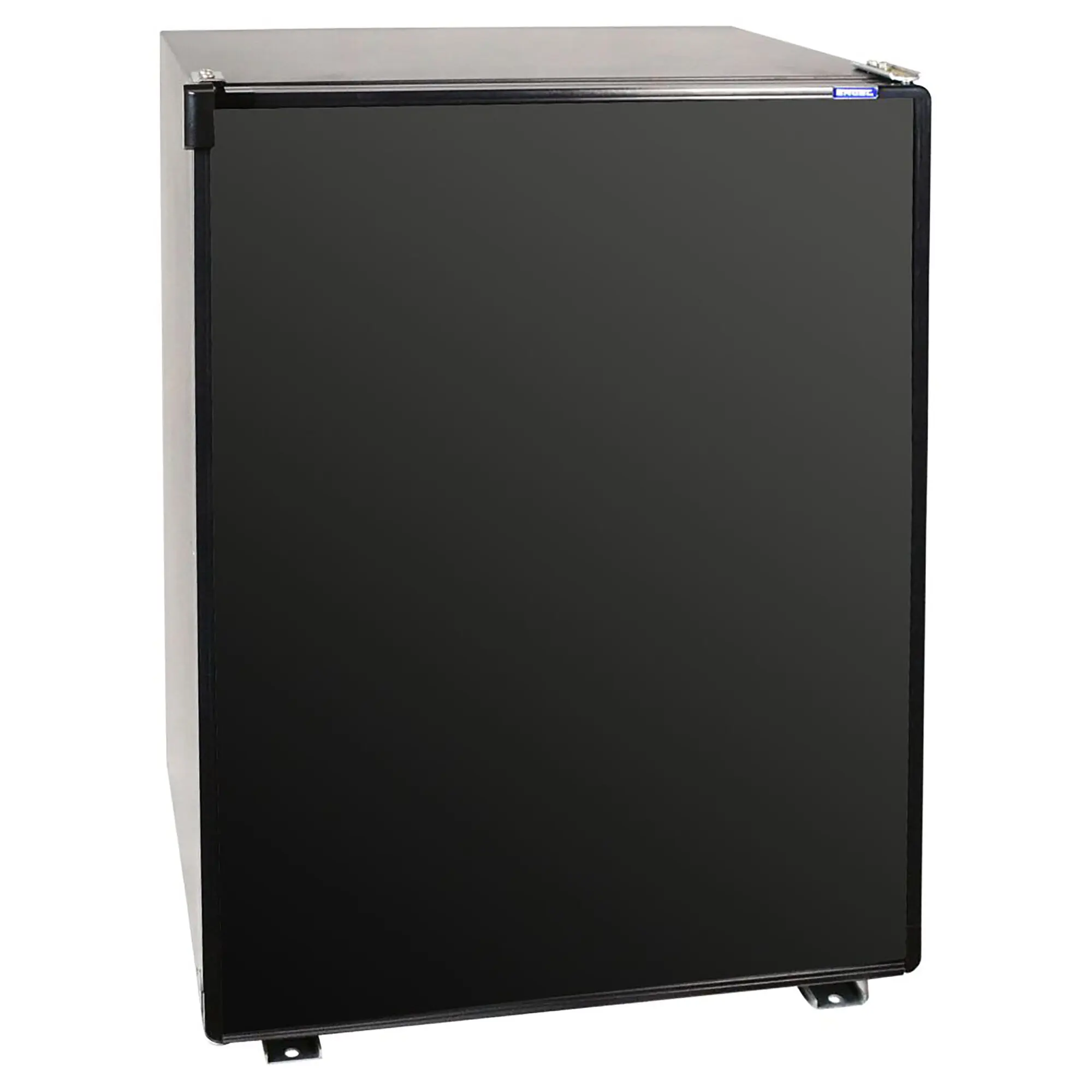 This model is suitable for permanent use. The robust construction as well as the compressor are made for a long service life: the body consists of a metal casing with polyurethane rigid foam. The door frame is stove-enameled in grey, the door is equipped with a magnetic closure and an exchangeable door hinge and is glossy black. The décor can be changed. Moreover, the compressor refrigerator is equipped with a spacious **-freezer compartment. With an optionally available frame, the device can also be used as an integrated refrigerator. Included in delivery is a power supply with an additional 230 V connection.