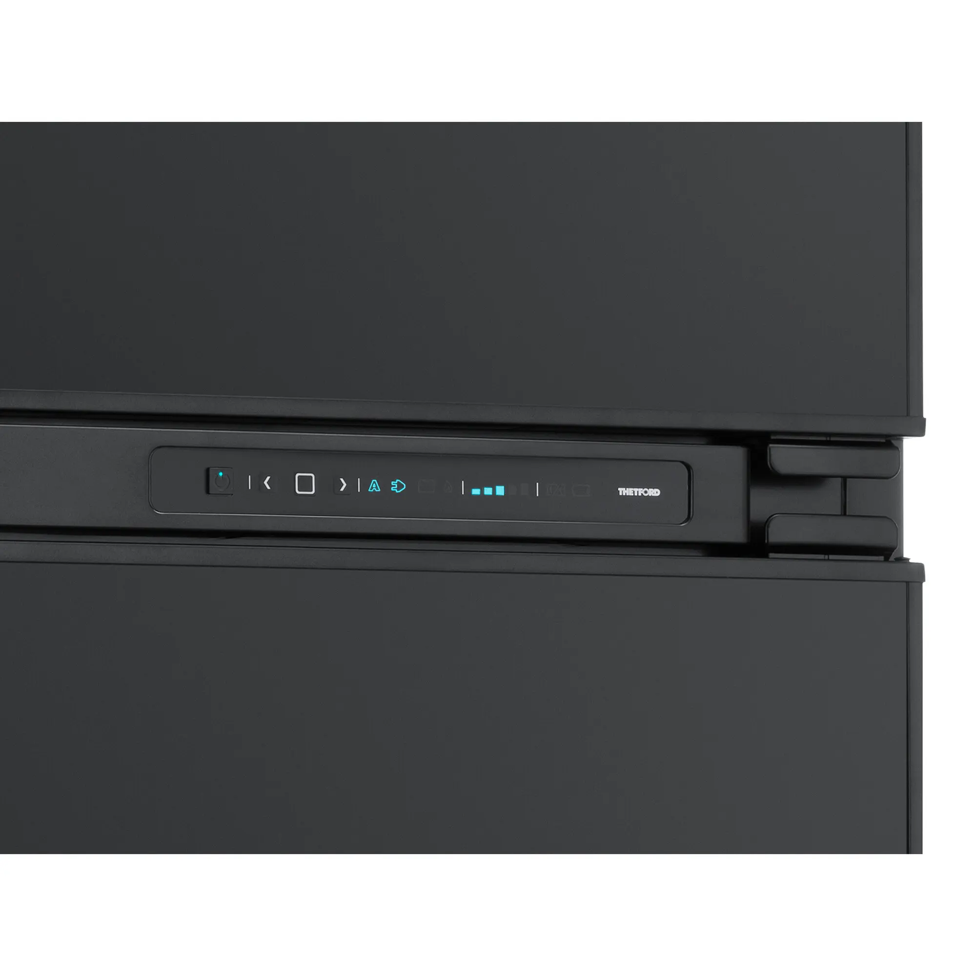 The evolved 4-piece refrigerator series by Thetford jumps a few steps ahead in the way of user-friendliness: the devices are now equipped with an automatic power selection. Thanks to the intelligent, patented electronics, a self-regulating power supply is ensured at an input voltage of 200 – 250 V; meaning you can be assured of permanent cooling. The refrigerators are CI-bus capable – they can be controlled via the central vehicle display. Moreover, the series is available in 2 versions: the electric LED version N4000 E+ and the comfort version N4000 with Touch Control LCD. For installing situations with little space in its width, there is the slim, but very spacious version N4142.