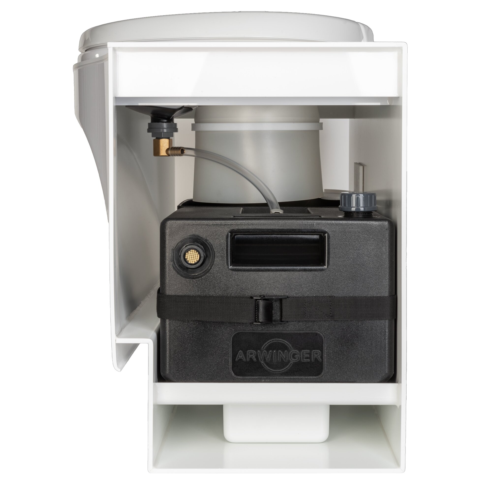 The Arwing cassette composting toilet replaces your Thetford C500 bench toilet without any adjustments. With an integrated cassette composting toilet kit, it allows for a clean separation of solids and liquids, which are collected in separate containers. Both parts are easy to empty – the solids container holds 9 litres, while the liquid container with a level indicator holds 7.7 litres. Made from robust ABS/PMMA plastic, the toilet offers convenience, high-quality workmanship and an appealing design. The replacement is reversible but should be carried out by professionals.