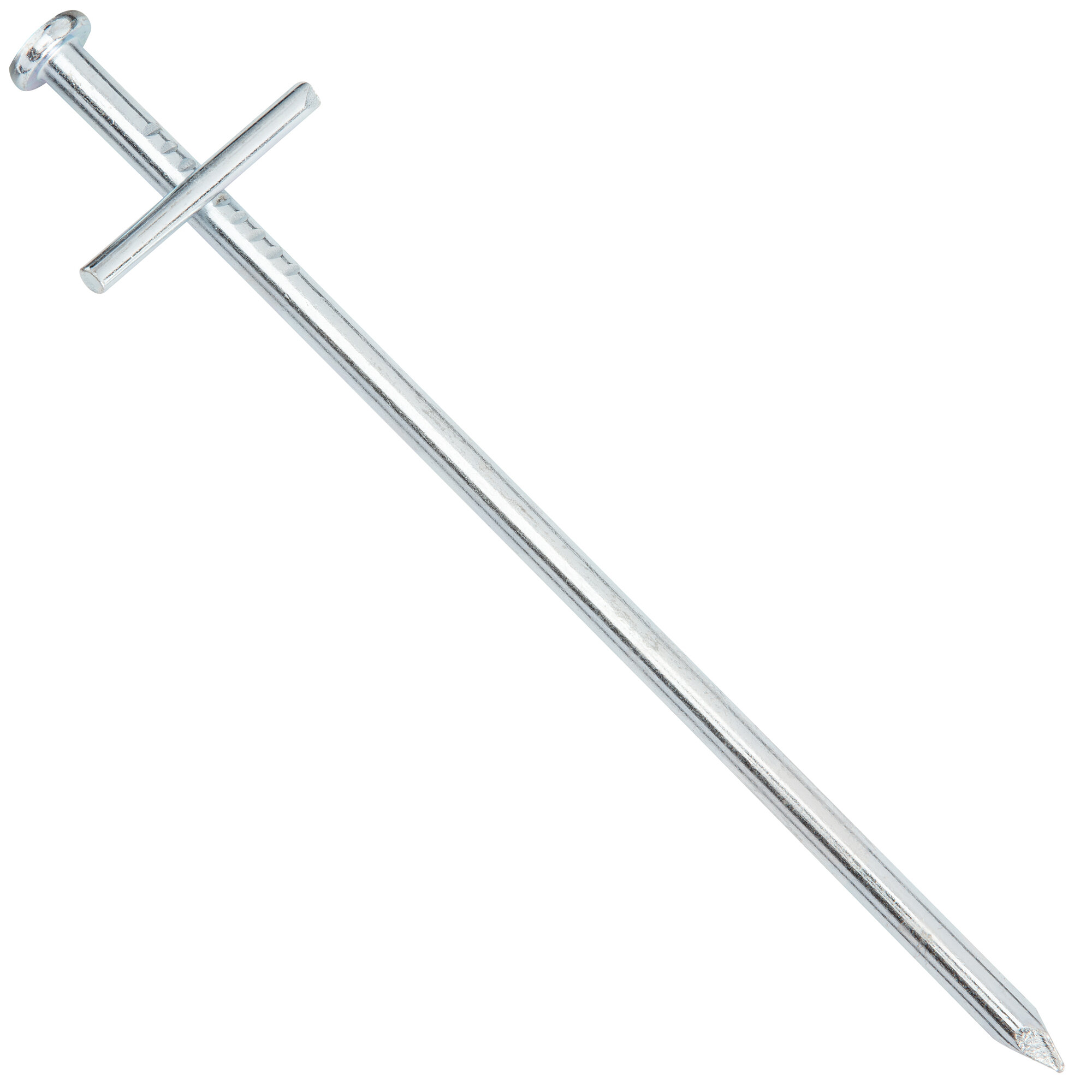Round ground spike with T-profile made of zinc-coated steel. Suitable for hard to very hard grounds.
