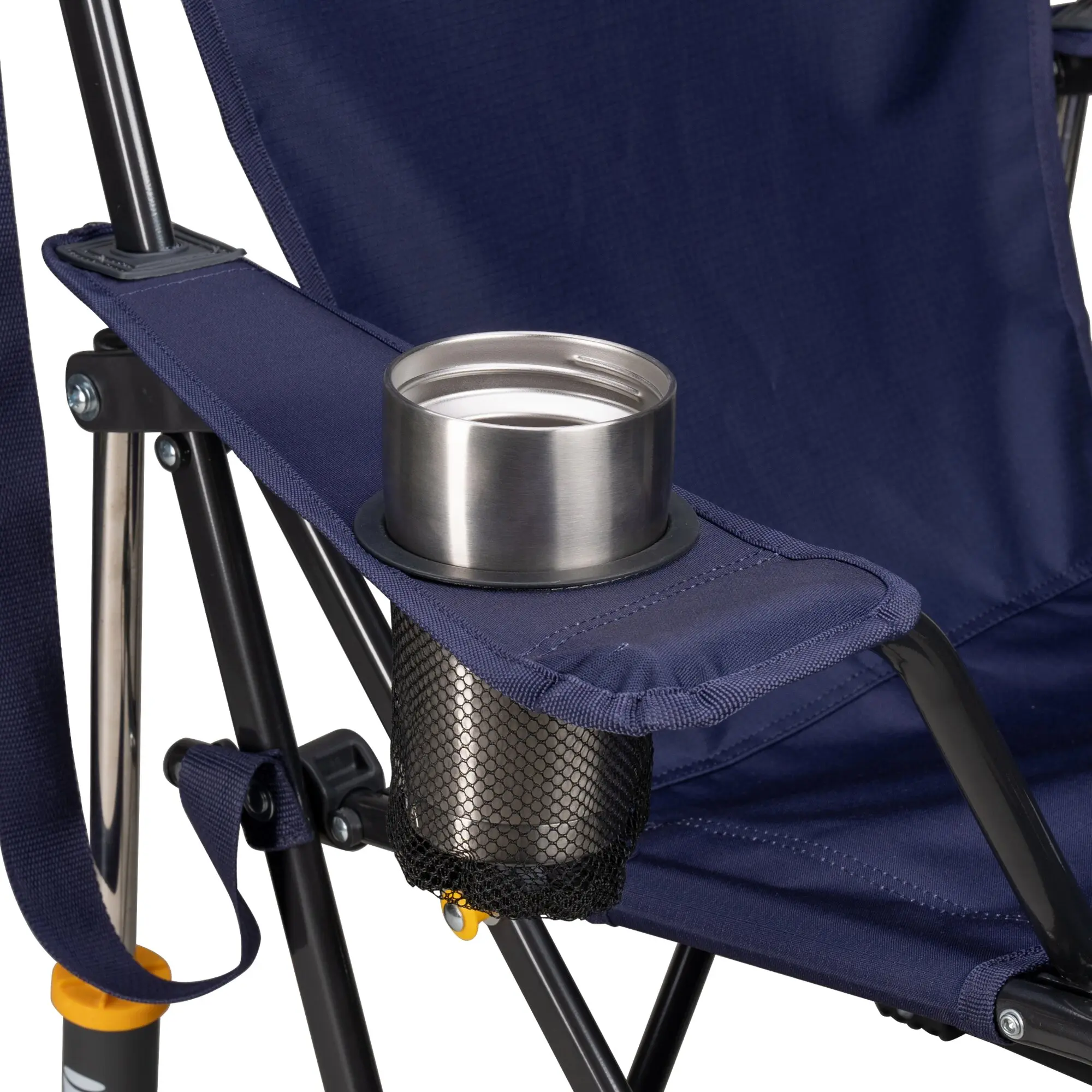 Outdoor rocking chair with a high backrest, a relaxed seating angle and Spring-Action Rocking Technology™ for gentle rocking. Breathable mesh provides ventilation. A drink holder, a phone pocket and a shoulder strap increase functionality and mobility. Folds down 35% smaller thanks to Eazy-Fold Technology™.