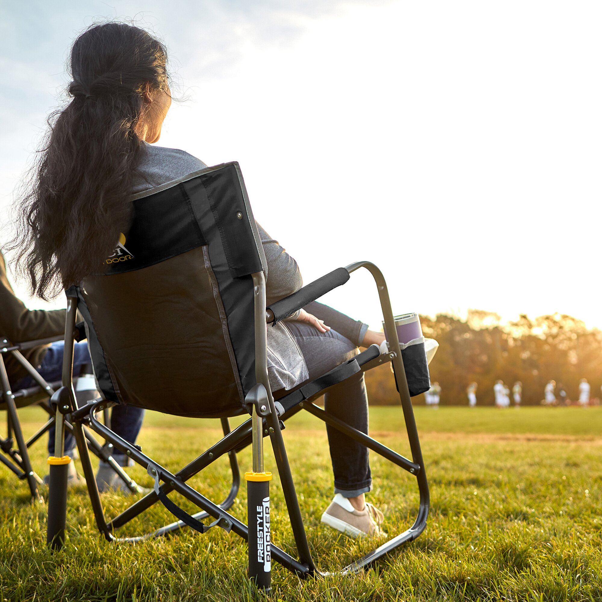 Relax outdoors with the Freestyle Rocker. The patented Spring-Action Rocking Technology™ ensures a smooth rocking motion when camping, fishing or in the garden. It has a convenient carrying handle and can be opened and closed safely and easily with the patented Eazy-Fold™ technology.