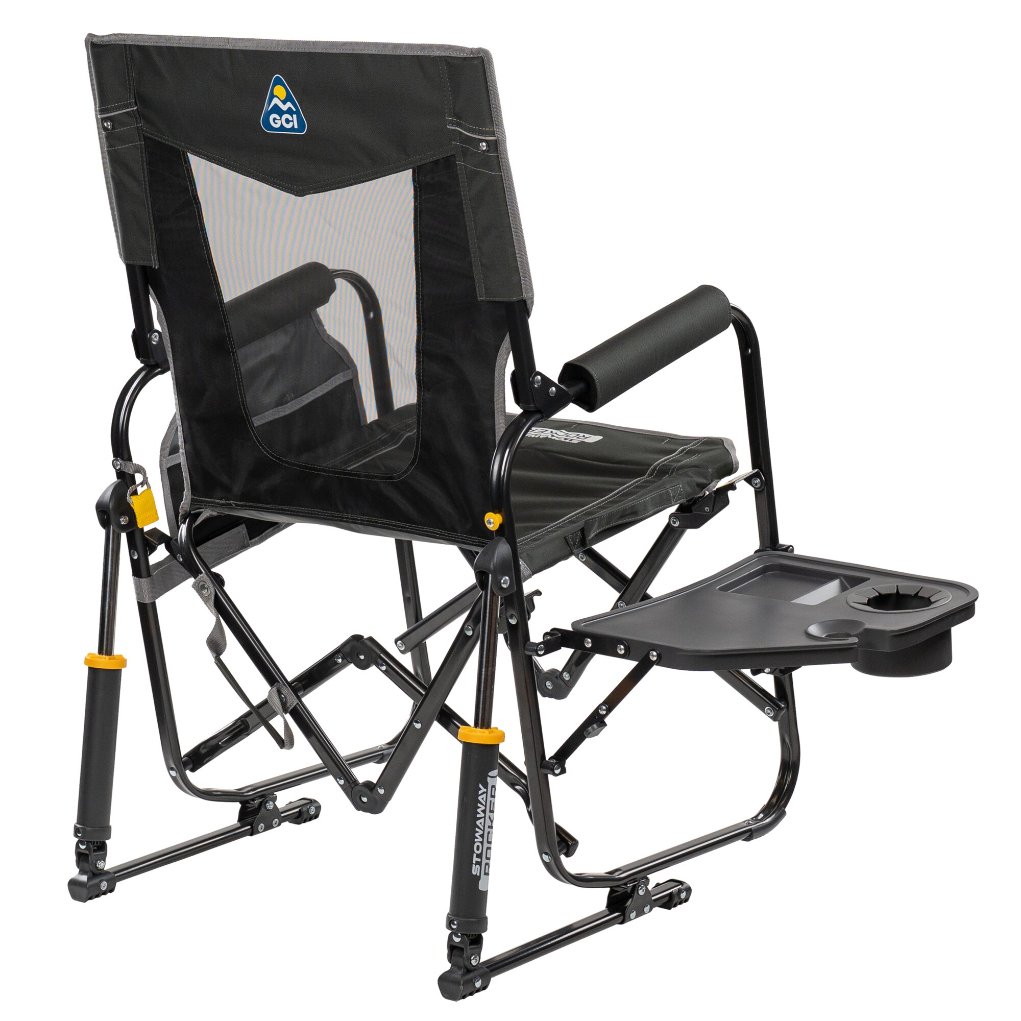 The Stowaway™ Rocker offers premium rocking comfort with patented Spring Rocking Technology™ and a 35% more compact fold thanks to Eazy-Fold Technology™. Featuring a deluxe side table, an Infinity Comfort Edge seat, a high backrest and padded armrests – ideal for camping, balcony or on the go.