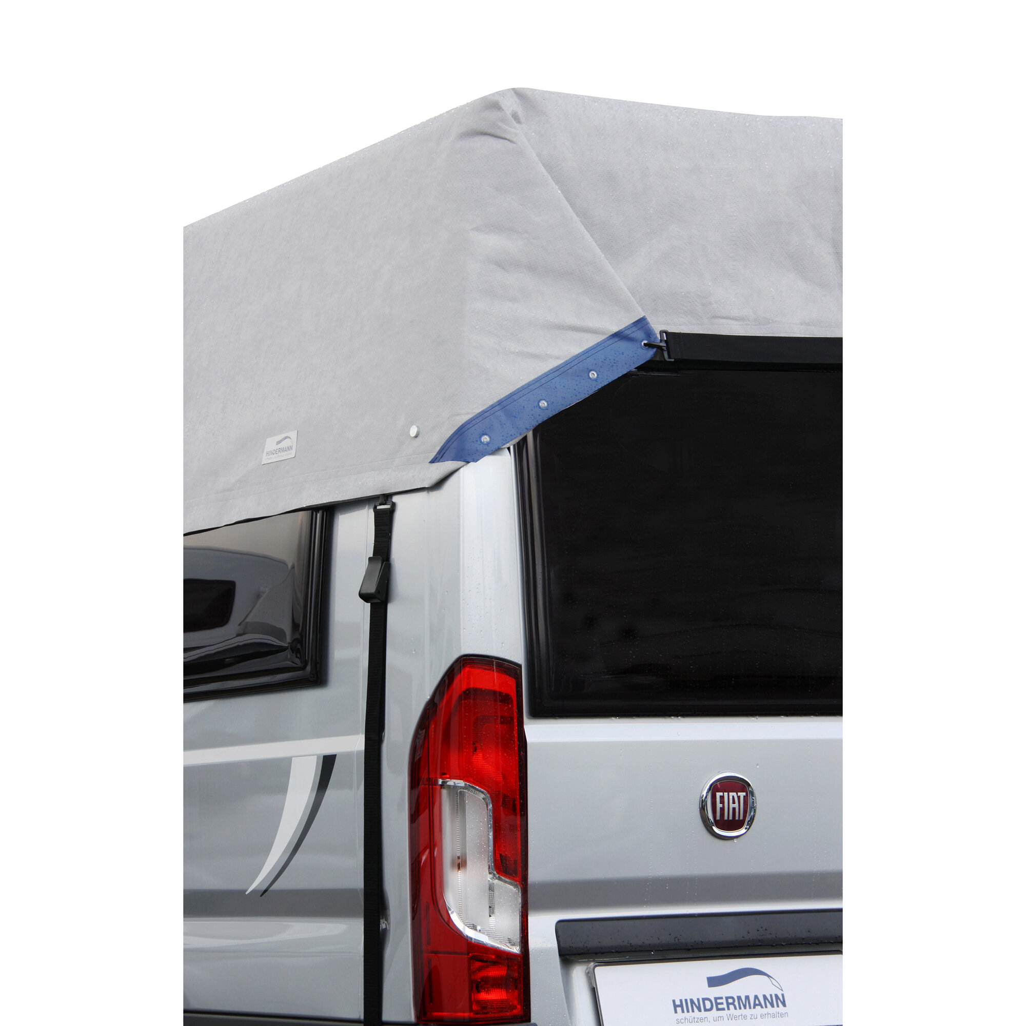 Breathable roof protection tarpaulins made of Tyvek Supra-FC, whose cut sizes are specially adapted to the various vehicle lengths of the Fiat Ducato built since 2006/07 with H2 roof. For a perfect fit on the vehicle, the tarpaulins have an eyelet strip all round so that they can be tensioned exactly as required by the vehicle using the standard belt system. The eyelets used have integrated reinforcement and a protective strip underneath to prevent them from coming into contact with the vehicle.