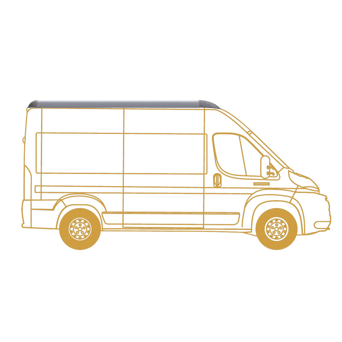 The rail is attached to the existing standard mounting points of the vehicle roof. The end pieces are glued to the roof with Sikaflex (not included). Any number of EuroCarry crossbars can be attached. It is possible to mount a Fiamma F45 awning or Omnistor Series 5 (steep face awning) and Fiamma F45.