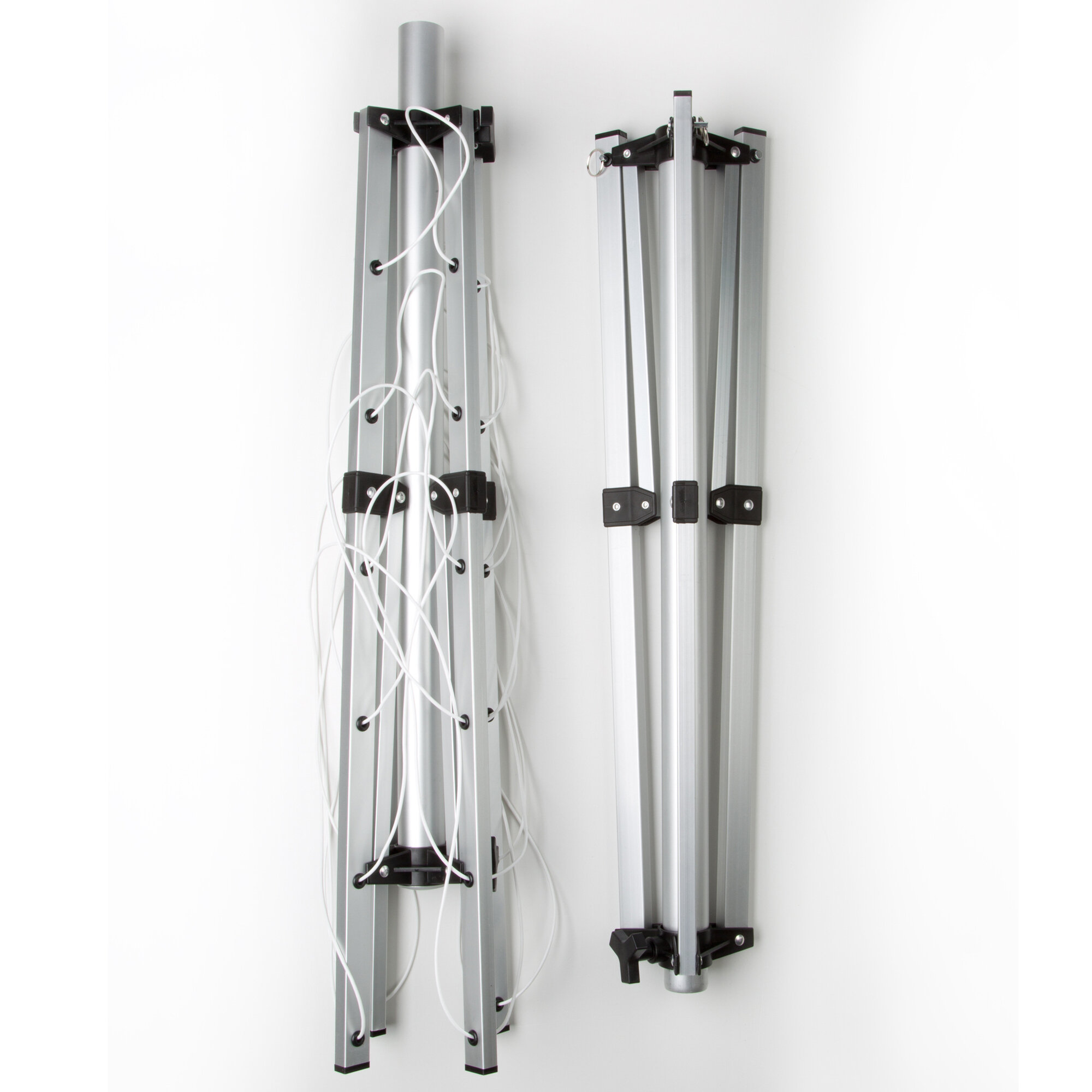 The aluminium rotary clothes dryer with stand and 12 pegs offers space for your holiday laundry on 15 m. Sturdy construction with a 40 mm pipe diameter. Windproof stand due to three sturdy screw pegs. Easy to assemble. The durable bag with zip protects against dirt and facilitates transport.