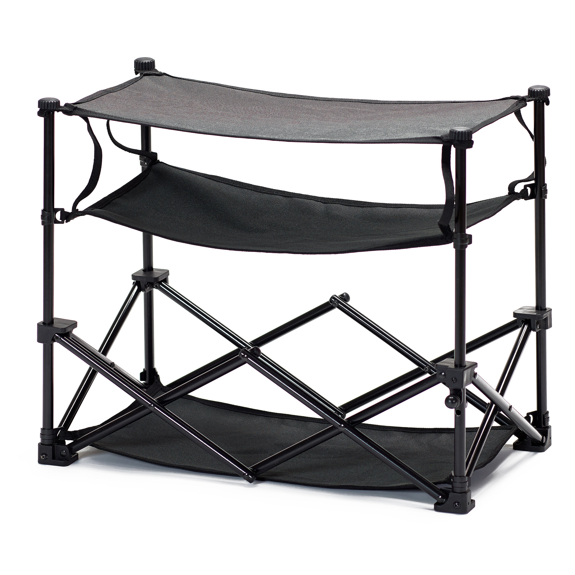 The compact shoe rack is perfect for small awnings. The aluminium frame provides stability and a low weight, and the cover is easy to clean. Thanks to the intelligent folding mechanism, the shoe rack can be folded to a small size and simply be stored in the transportation sack included in delivery. Dimensions W 43.5 x H 51 cm x D 26 cm, weight 1.79 kg.
