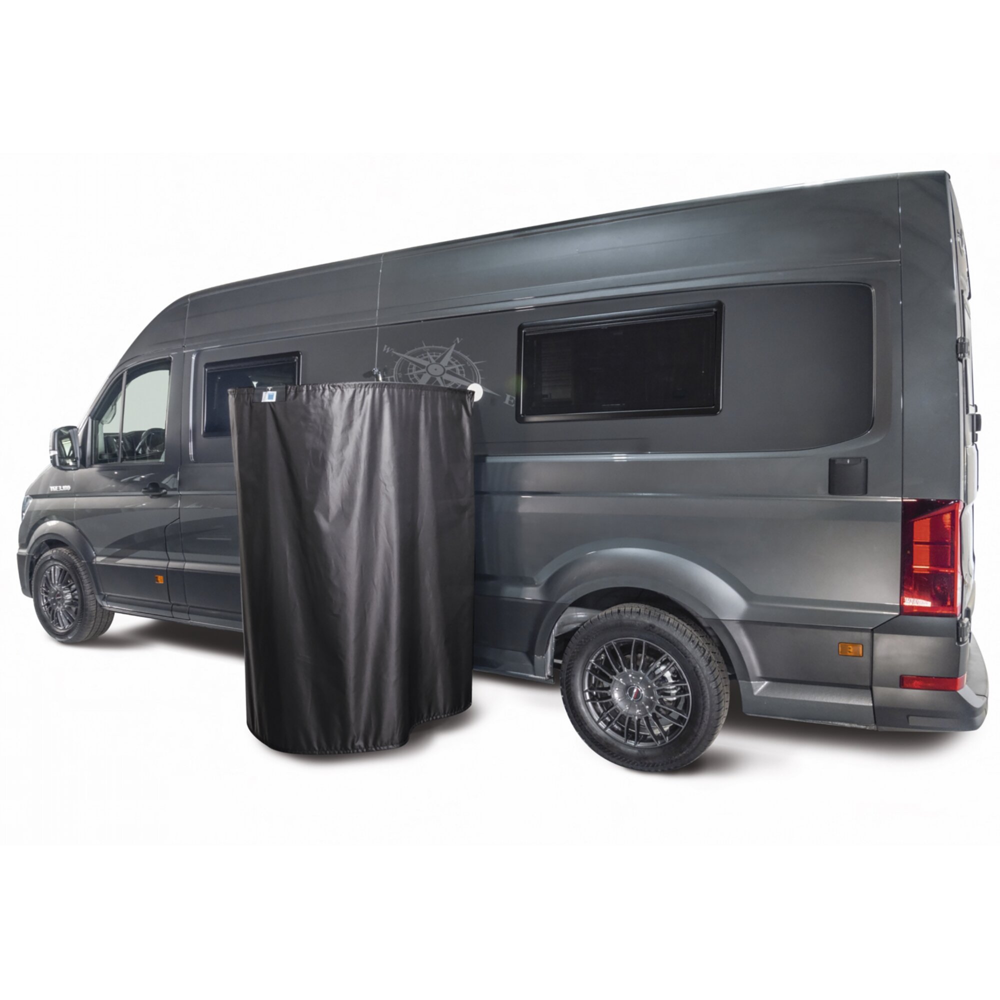 Space-saving outdoor shower curtain. No scratching of the paint thanks to magnetic fastening. Incl. magnetic brackets and transport bag.