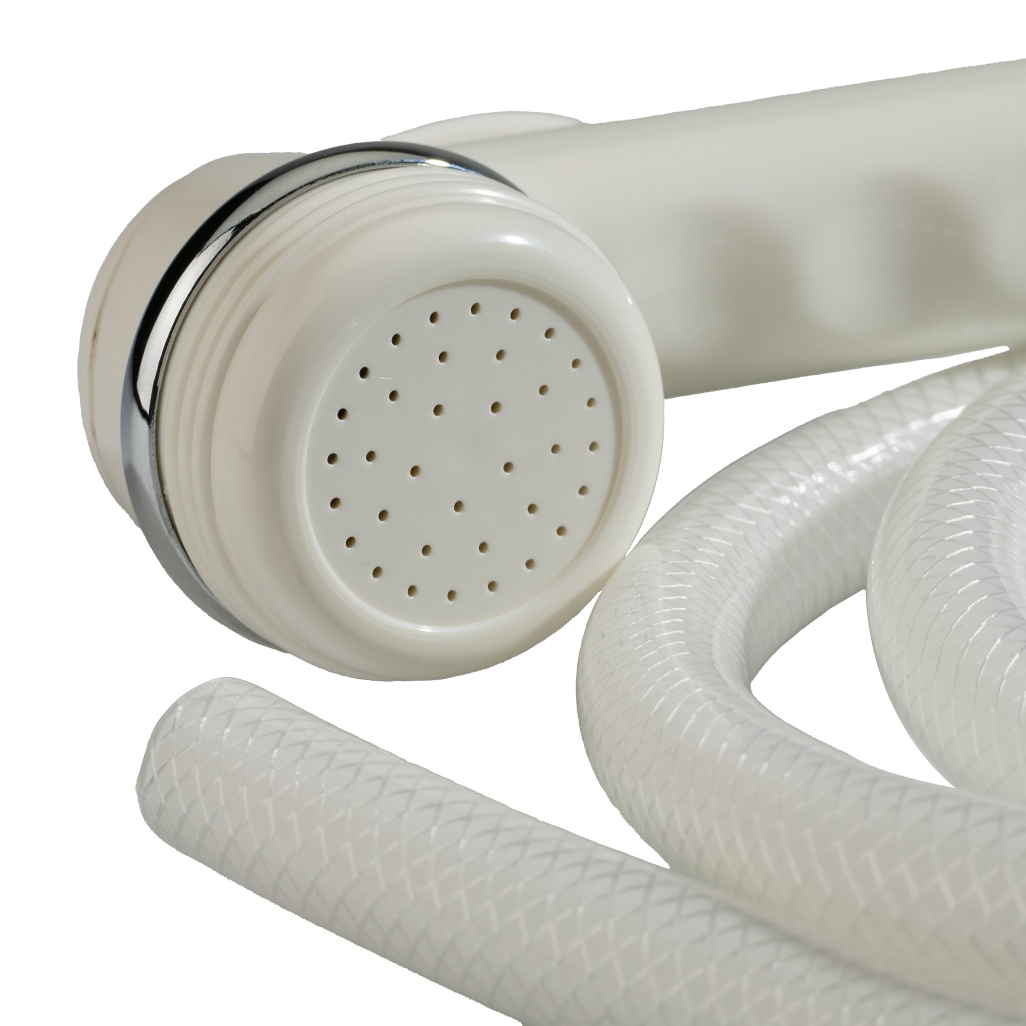 Shower set with plastic shower head and connector for attachment to the water outlet. Hose length 1.5 m