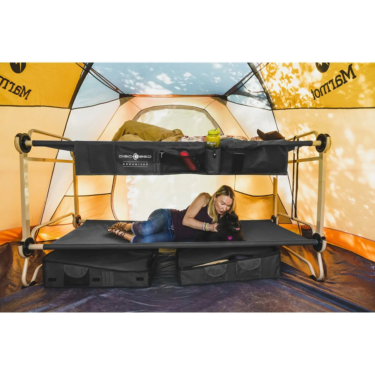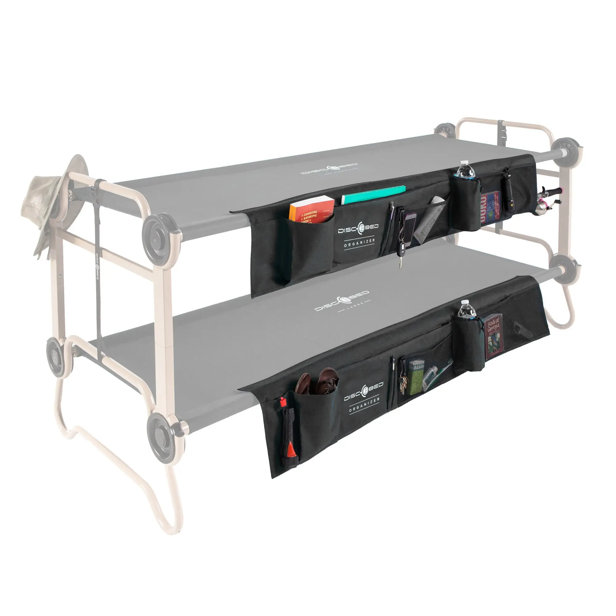 The convenient side pocket can be easily attached directly to the mattress of the Disc-O-Bed thanks to the handy Velcro fastener. This intelligent solution allows you to store personal items, drinking bottles or other utensils directly next to the bed for easy access at any time.
