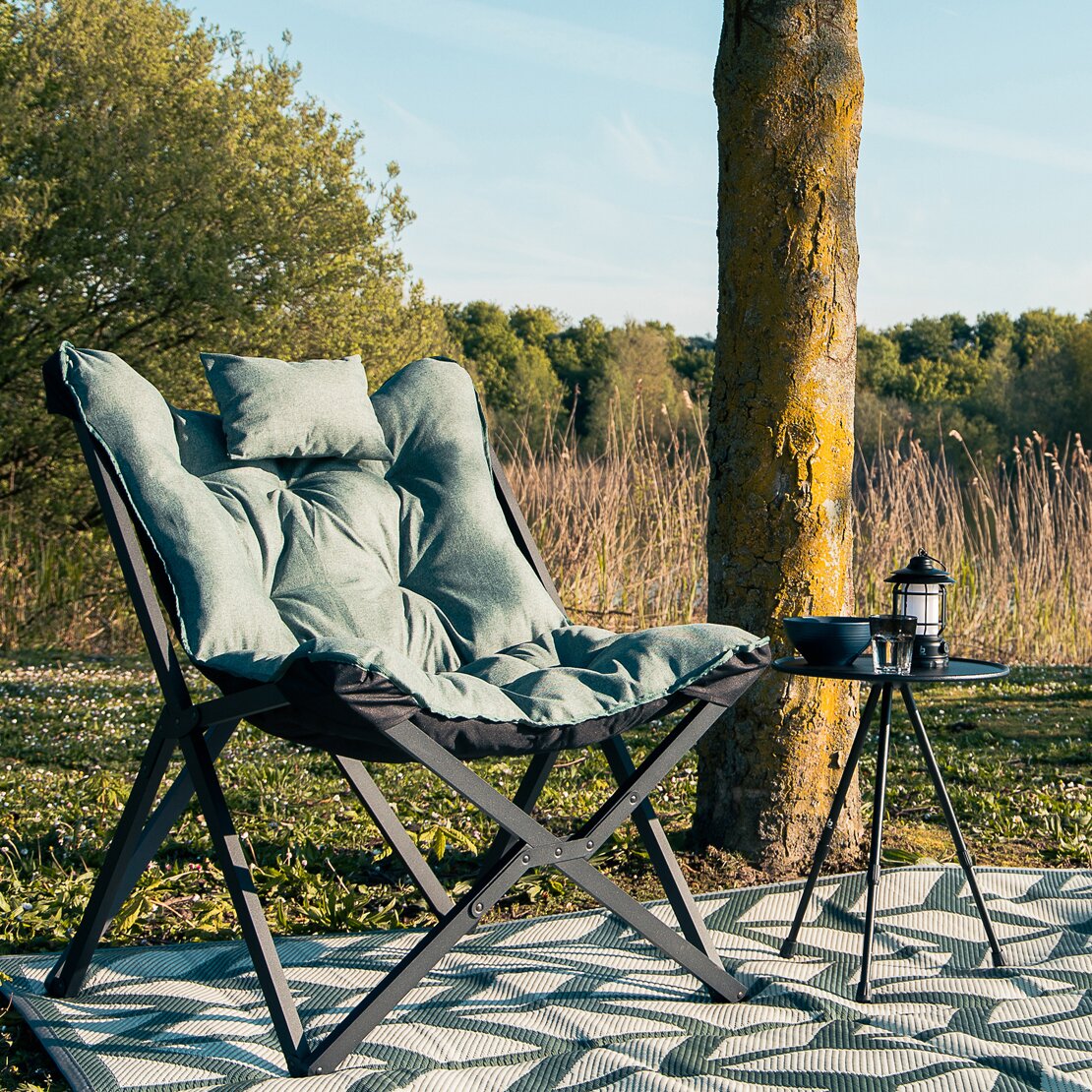 Foldable side table with industrial design, three continuously adjustable aluminium legs and non-slip silicone protection. The easy-to-clean plastic top provides ample storage space. Incl. carry bag.