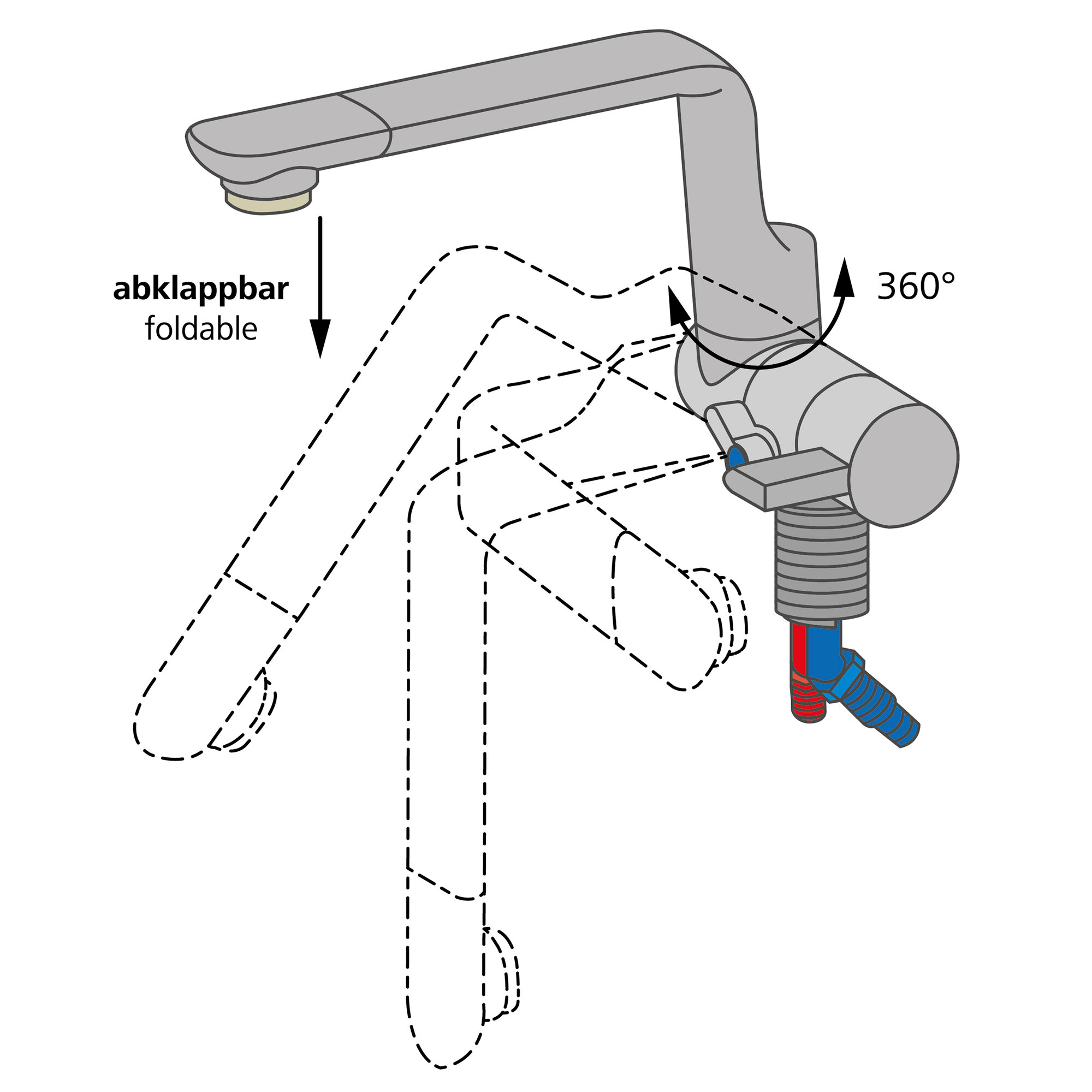 Made of plastic with a removable water outlet with a cleaning key for descaling and cleaning. Not suitable for pressurised water systems. Outlet: 160 mm (except chrome, black: 100 mm).
