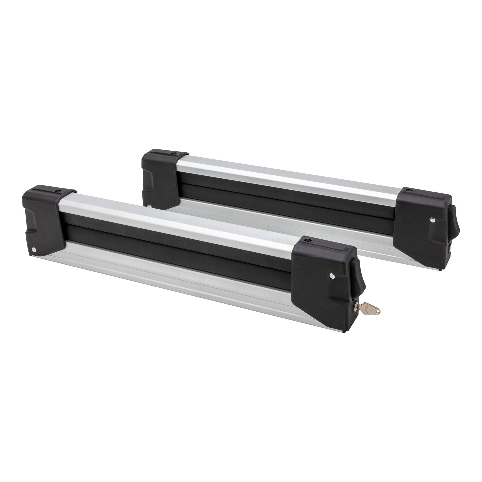 This accessory for the R-Bike Van offers a safe and stress-free way to transport skis and snowboards. The door can be opened while the skis are loaded. With locking system, padlock and an ergonomic release button. Made from anodised aluminium and injection-moulded plastic. For up to four pairs of coupled skis or two pairs of skis with two snowboards.