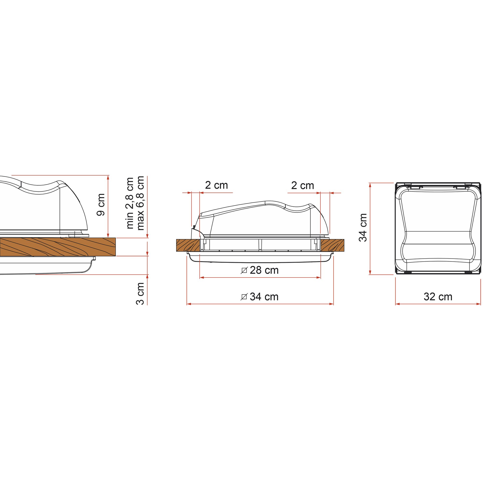 Small skylight, suitable for spatial conditions with smaller dimensions, ensures optimum ventilation of the interior. Can be motorised with the Kit Turbo-Vent 28 F.