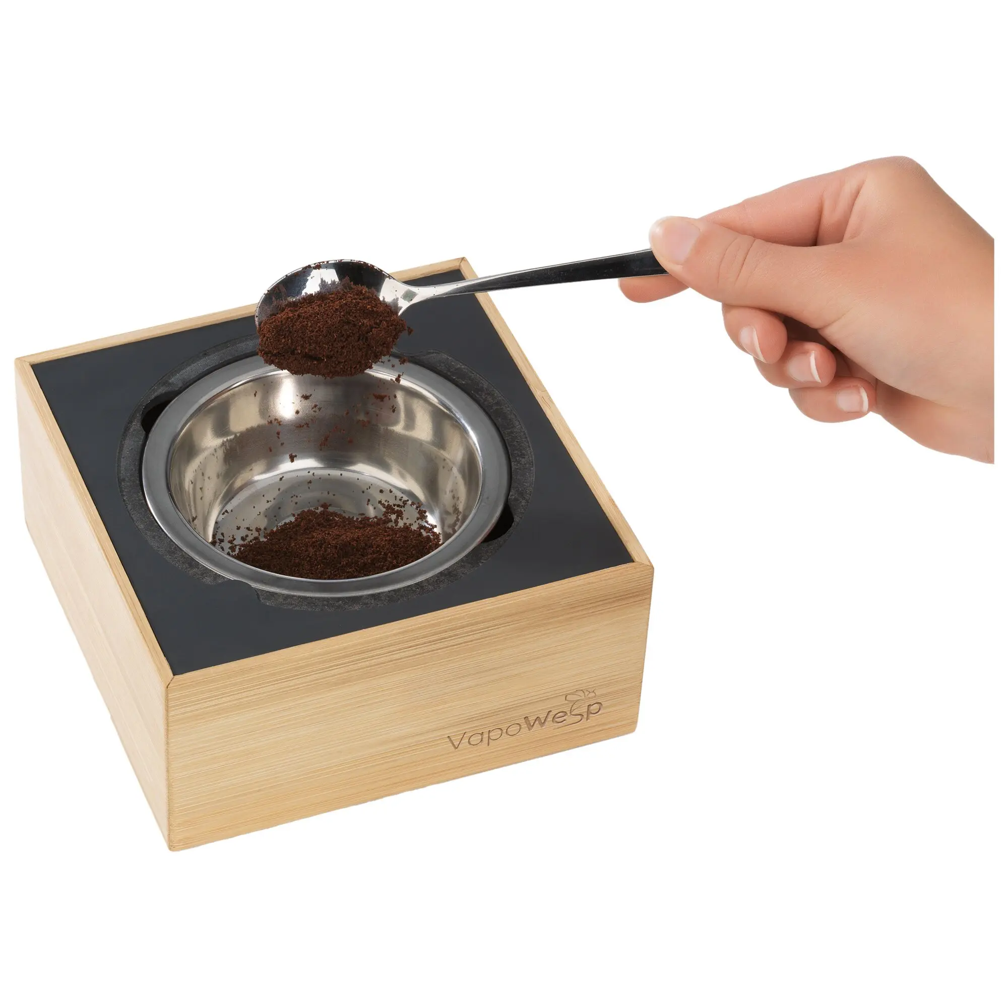 With the starter set, you can relax and enjoy your time outdoors – without any annoying wasps. Simply fill the fireproof smoking box with coffee powder*, mix it with the VapoPulver herbal mixture and light it. The smoke keeps away wasps, mosquitoes and gnats in a radius of approx. 2 – 3 m. The burnt ash can be used as plant fertiliser.