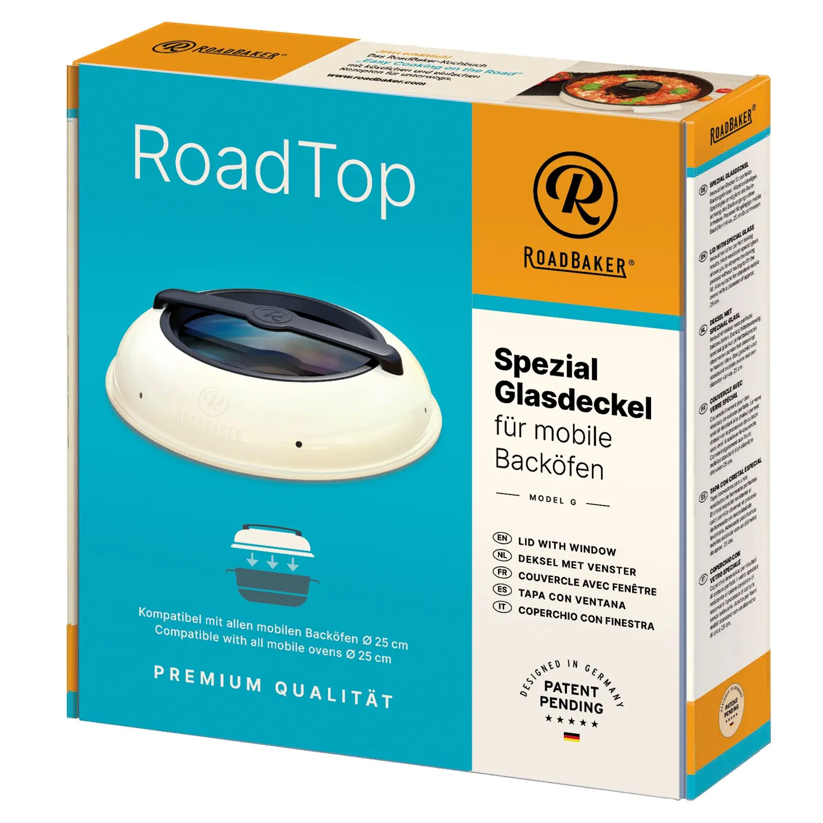 Suitable for camping ovens with a diameter of 25 cm. The large, heat-resistant viewing window allows a clear view of the baking process without having to lift the lid. The heat stays inside the oven, reducing energy consumption and ensuring even results.