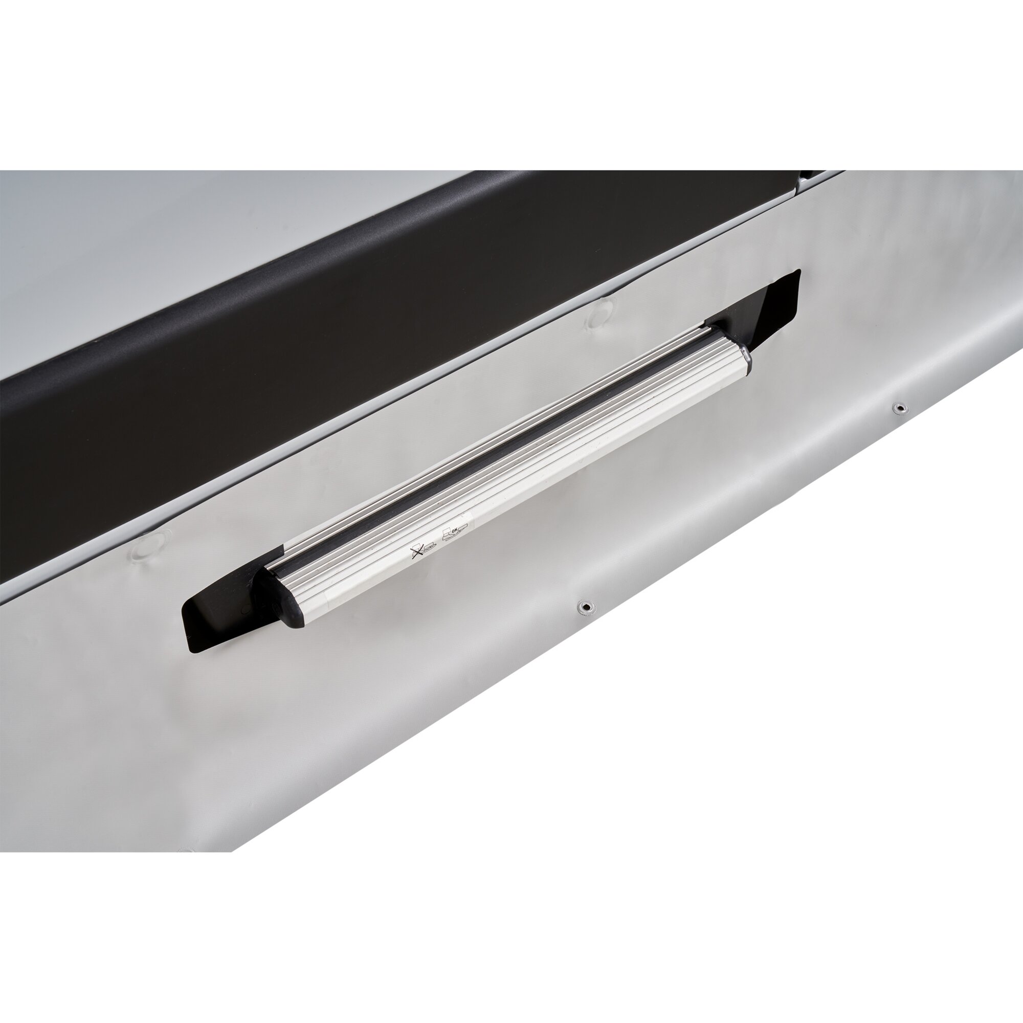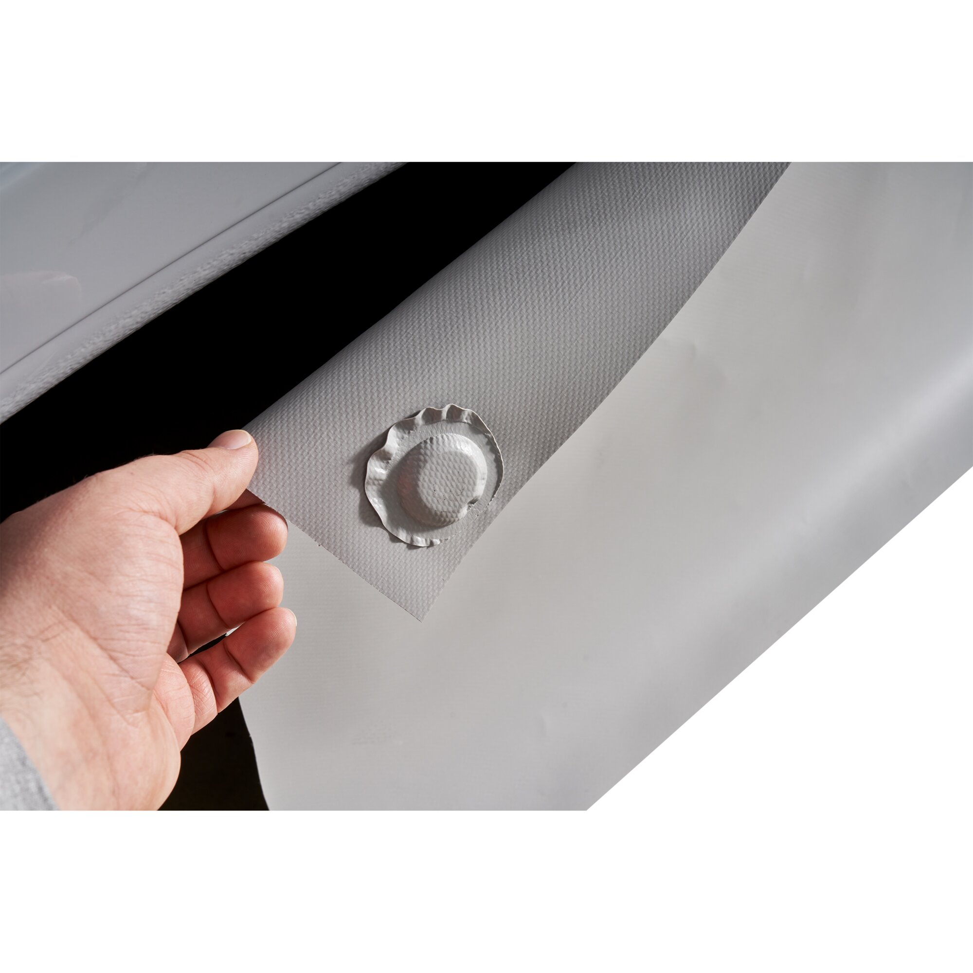 Suitable for the Fiat Ducato built since 2006/07, cuttable draught skirt, equipped with a recess (length approx. 70 cm) for mounted steps. Made of light grey, winterproof tarp ware with waterproof shrink-wrapped magnets for installation at the car chassis lower edge.
