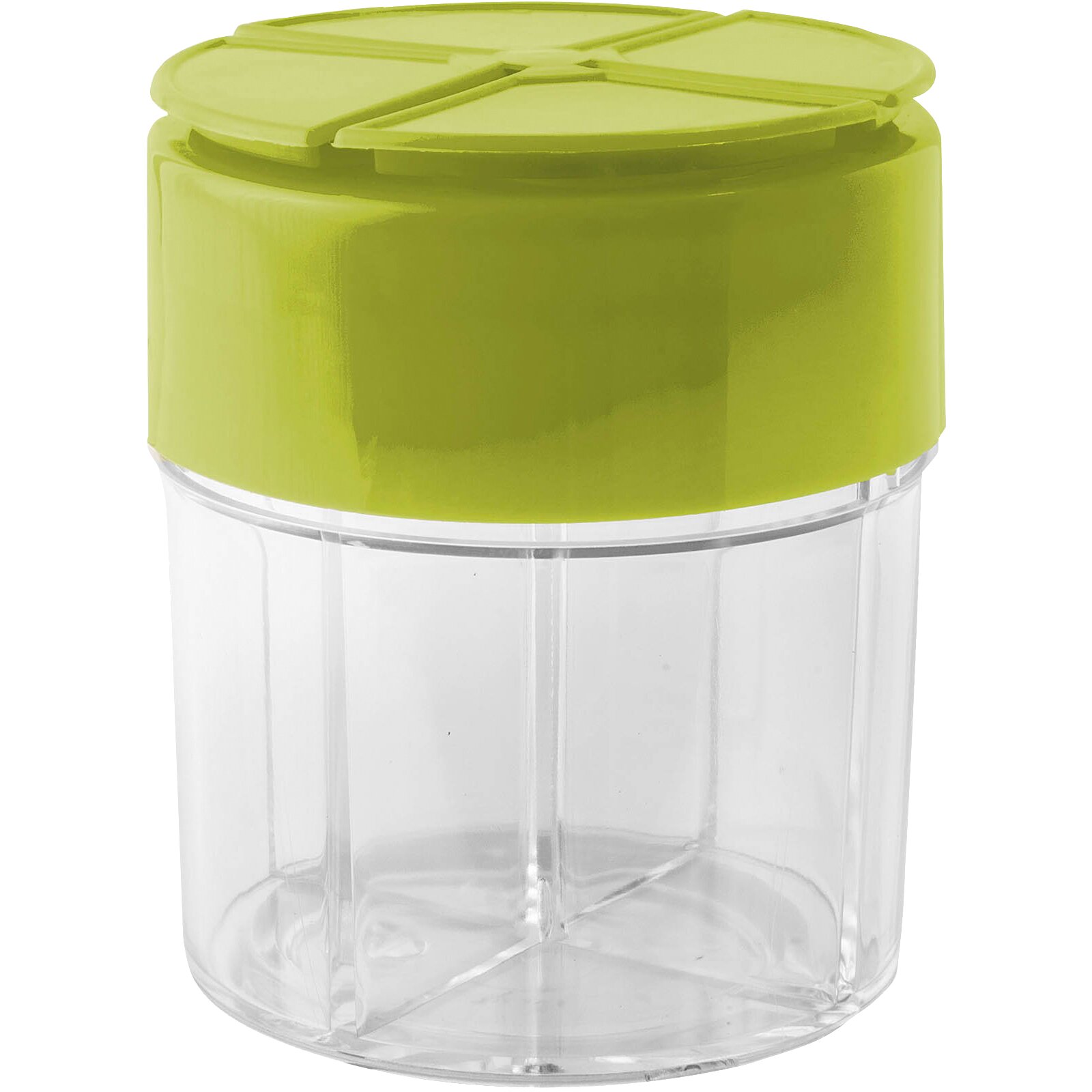 Convenient spice shakers made of high-quality plastic. The four separate chambers with a capacity of 50 ml each can be filled with various spices.