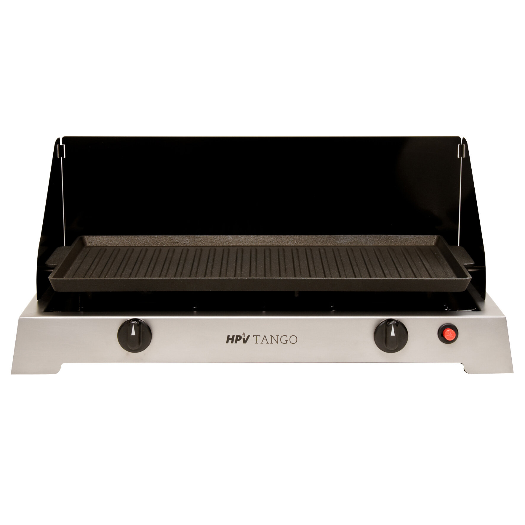 HPV products are characterised by their high performance and durability. The innovation is the premium model Tango. Equipped with strong burners (2.5 kW each) and an integrated windbreak, the exclusive stainless steel stove provides excellent performance at all times. The safety valve and piezo ignition also guarantee maximum safety and comfort. And if that is not enough: the additionally available cast aluminium grill grate (non-stick-coated) allows you to instantly transform the stove into a complete barbecue.