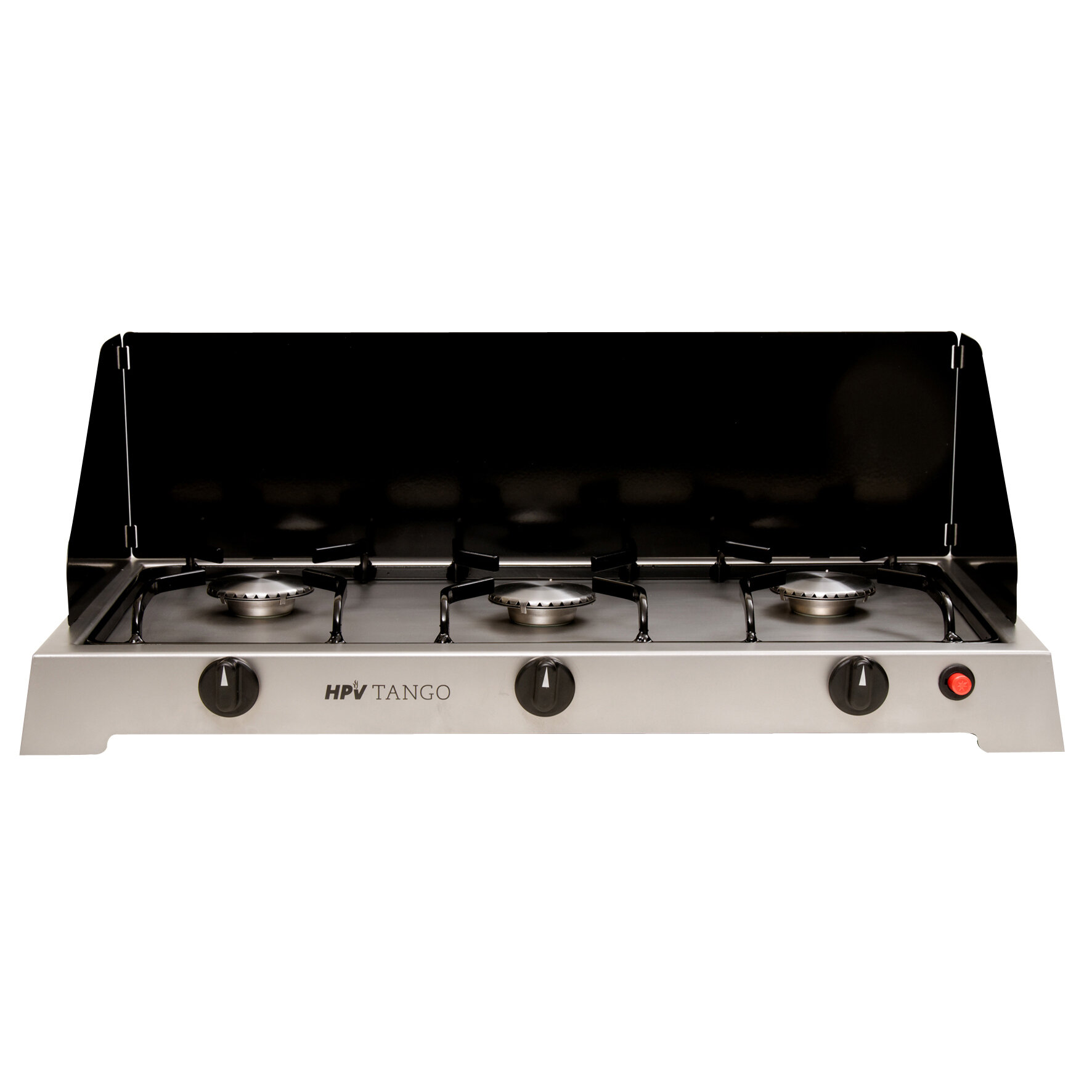HPV products are characterised by their high performance and durability. The innovation is the premium model Tango. Equipped with strong burners (2.5 kW each) and an integrated windbreak, the exclusive stainless steel stove provides excellent performance at all times. The safety valve and piezo ignition also guarantee maximum safety and comfort. And if that is not enough: the additionally available cast aluminium grill grate (non-stick-coated) allows you to instantly transform the stove into a complete barbecue.