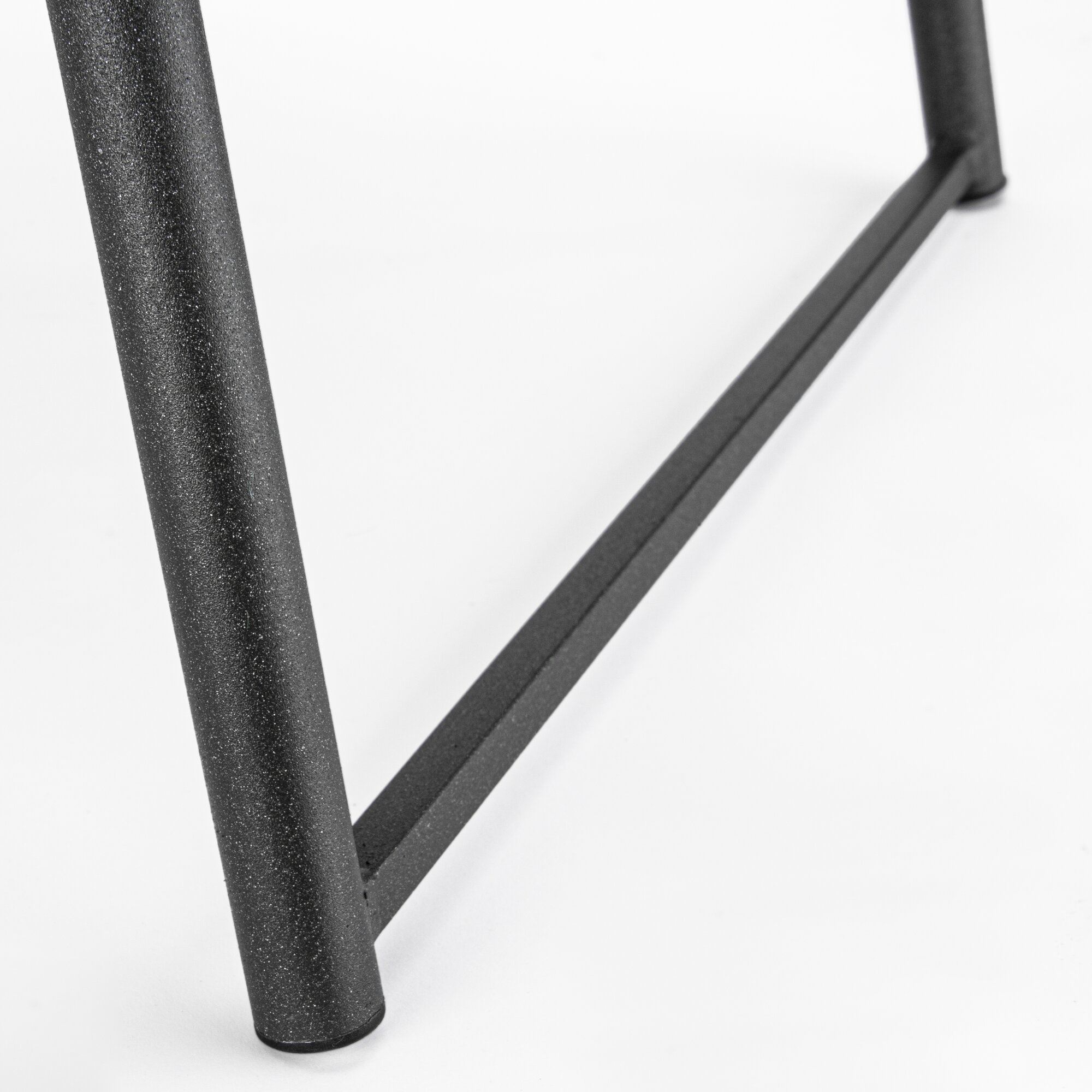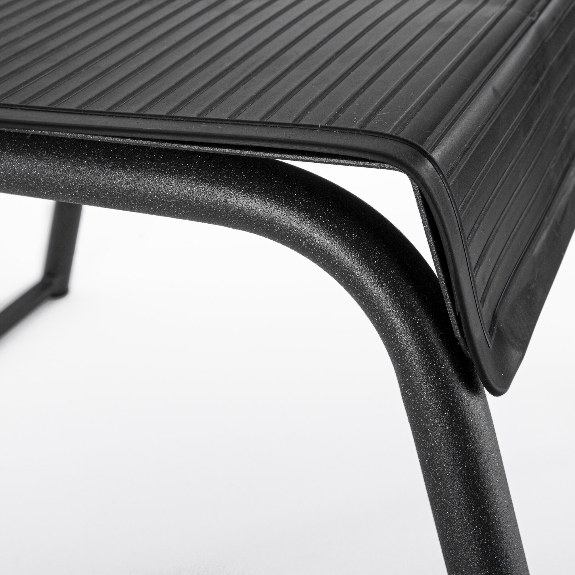 Robust design, steel, powder-coated, with anti-slip and exchangeable rubber mat. Does not sink into the ground due to low-lying rail.
