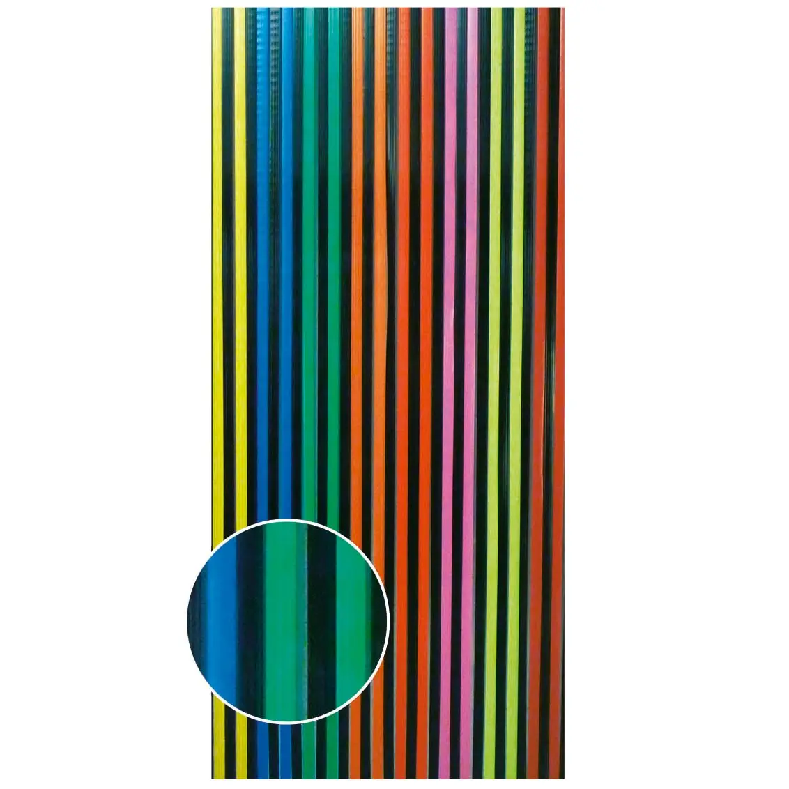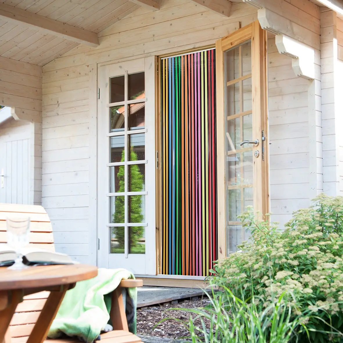 Pure nostalgia or just like at grandma's. Thanks to the 3 different colours, there is something for everyone. The strip curtains do not tear when they are accidentally caught in the door and do not clatter. With attachment rail, 34 profiled strands. PE foil. The mounting material is included in delivery.