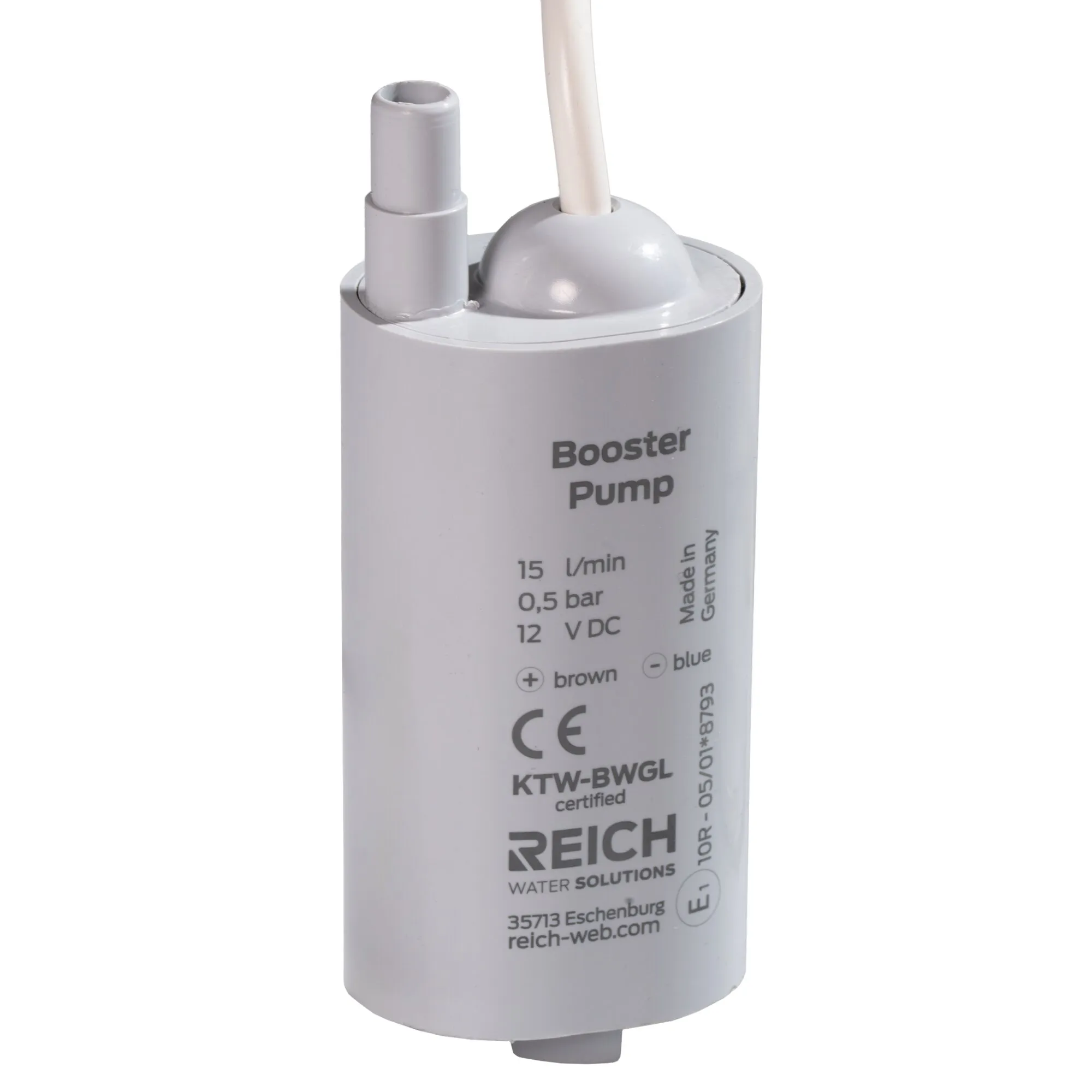 Simple, durable and powerful submersible pump by Reich. The material and the surface of the pumps are easy to clean. No check valve or automatic ventilation. Often used as a backup in the camping area.