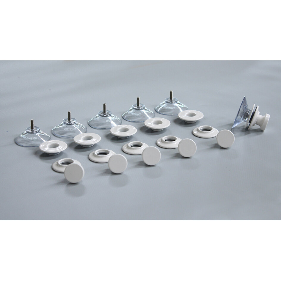 Clear suction cup with sturdy clip rings and an enormous holding ability. Diameter 40 mm, 5 pcs., handle colour light grey.