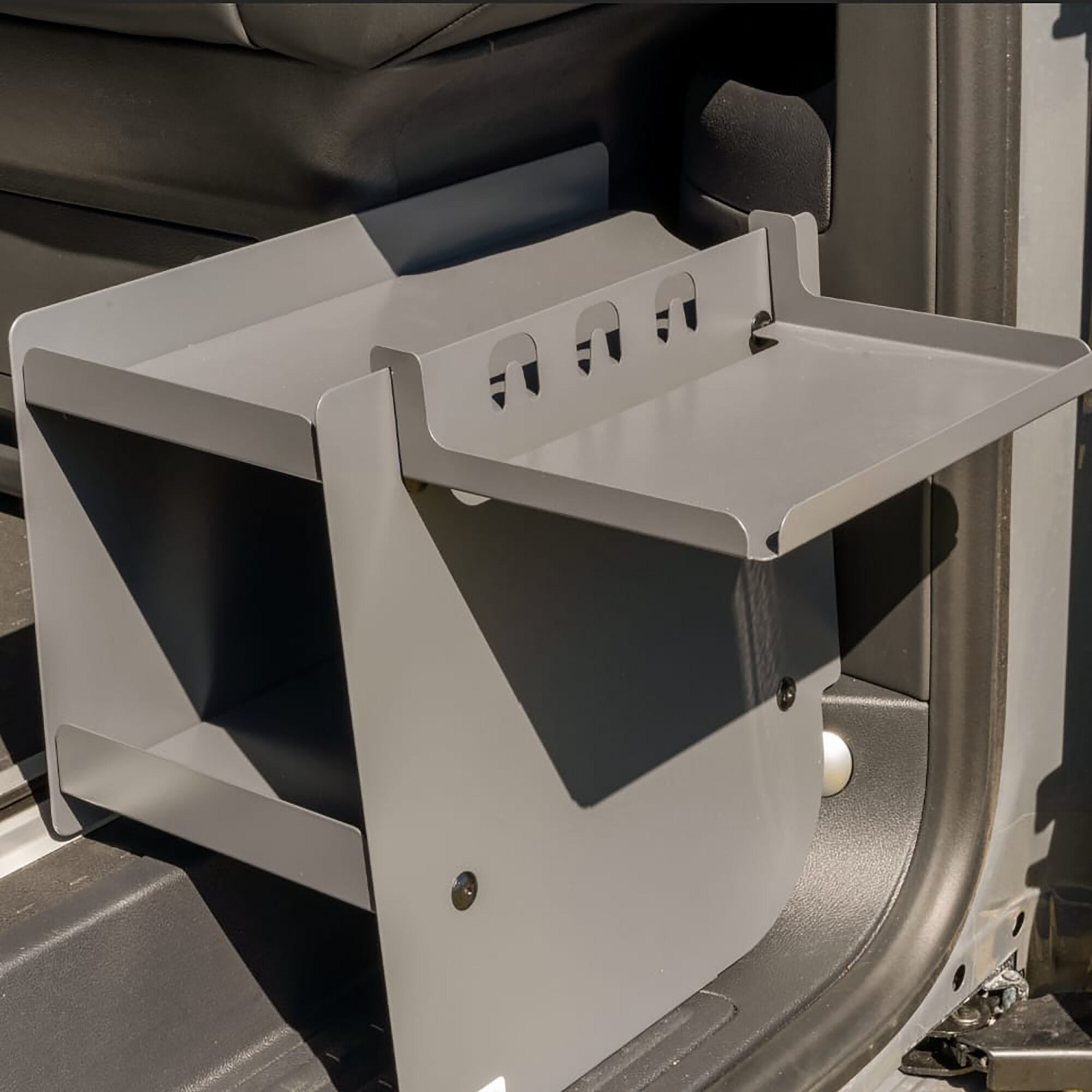 The ultimate extra for the shoeBOXX. The small table can be attached to the shoeBOXX when the sliding door is open. All functions, such as the hook for your keys, are fully usable. The table is easily suitable for placing two cups, glasses or other utensils.