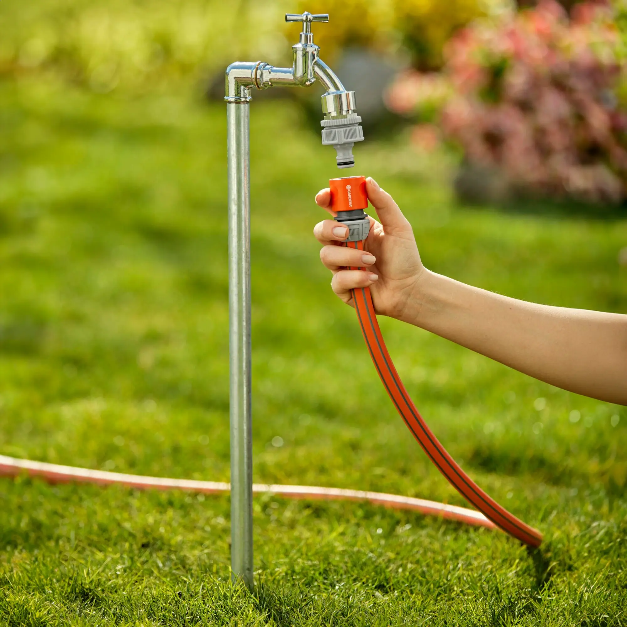 The high-quality GARDENA tap connector allows you to securely connect a garden hose to a tap. GARDENA manufacturer's warranty 5 years.